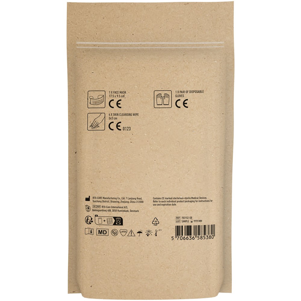 Schutzset praktisch für zu Hause, im Auto oder im Urlaub. Inhalt: 1 Gesichtsmaske, 4 Reinigungstücher und 1 Paar Handschuhe. Alle im Set enthaltenen Artikel erfüllen alle geltenden EU-Vorschriften. Der Preis beinhaltet einen Vollfarbdruck. Geliefert in Papierhülle.