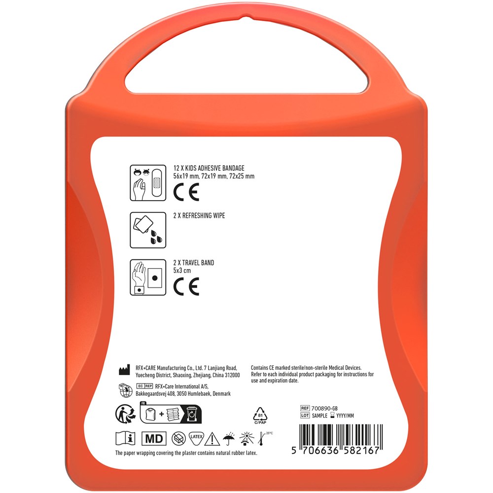 Das MyKit Kinderreiseset enthält das Nötigste für die grundlegende Wundversorgung und Reisearmbänder zur Linderung von Reisekrankheit. Inhalt: 12 Kinderpflaster, 2 Erfrischungstücher und 2 Reisearmbänder. Alle in diesem Set enthaltenen Erste-Hilfe- und Pflegeprodukte entsprechen den geltenden EU-Vorschriften. Der Preis beinhaltet Vollfarbdruck.