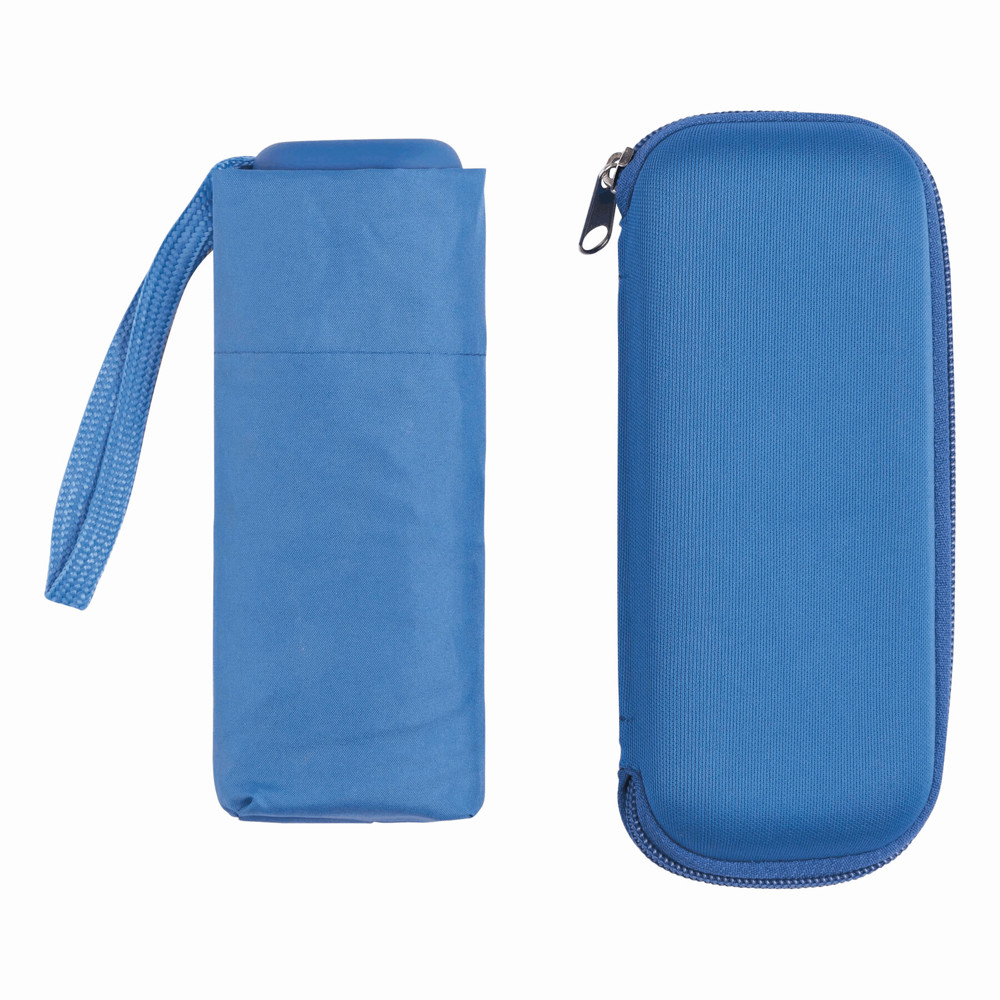 Aluminium-Mini-Taschenschirm POCKET mit farblich abgestimmtem Futteral, im EVA-Etui: 164g-leichtes Gestell, 5-teiliger Aluminiumstock, mit Aluminium- / Fiberglasspeichen und Metalltips, gummierter Griff mit Handschlaufe, Polyester-Pongee-Bespannung, Schließband mit Klettverschluss