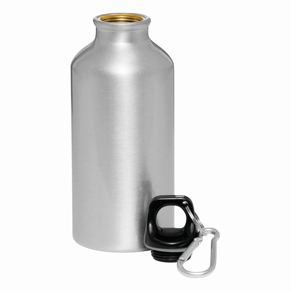 Aluminium-Trinkflasche TRANSIT: Kunststoffverschluss mit farblich abgestimmtem Karabinerhaken (der Karabiner ist NICHT als Sicherung beim Klettern geeignet), Füllmenge ca. 400 ml