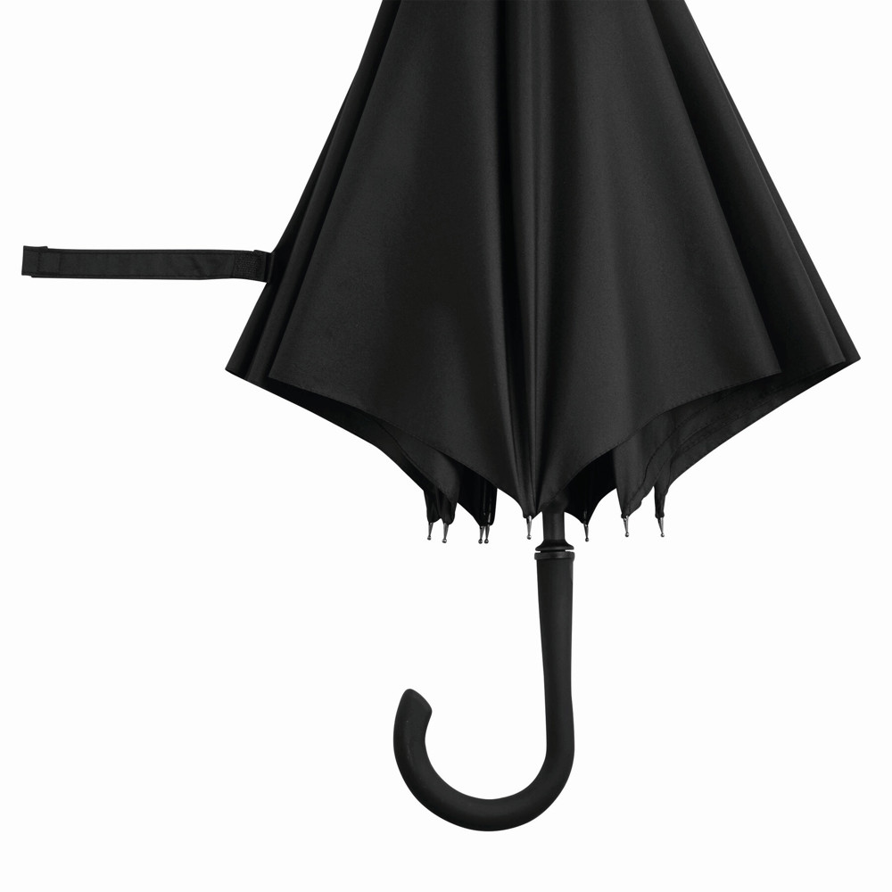 Automatik-Stockschirm LAMBARDA: Metallstock, Fiberglasspeichen, Metalltips, gummierter Rundhakengriff mit integrierter Auslösetaste, Polyester-Pongee-Bespannung mit stark wasserabweisender Spezialbeschichtung, Schließband mit Klettverschluss