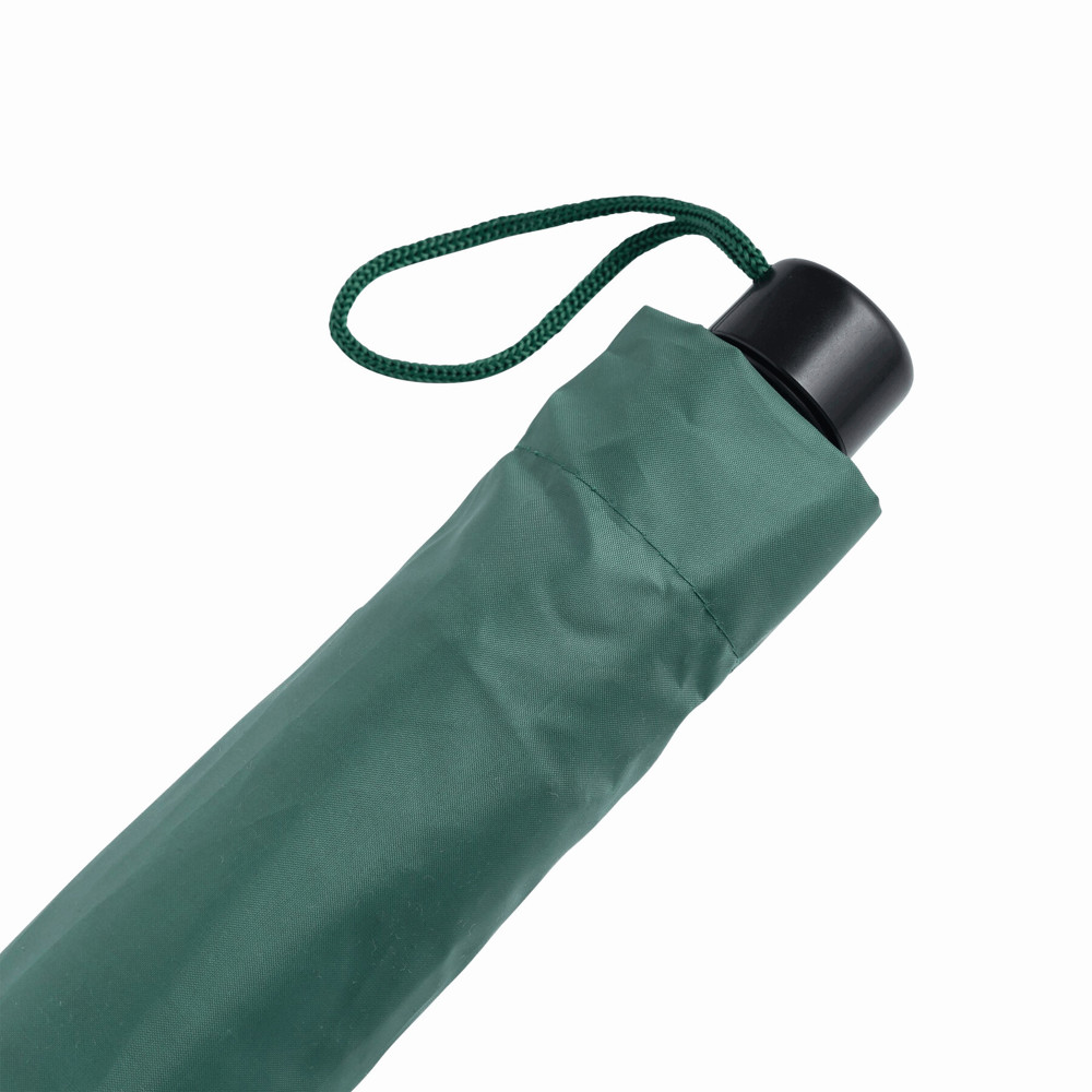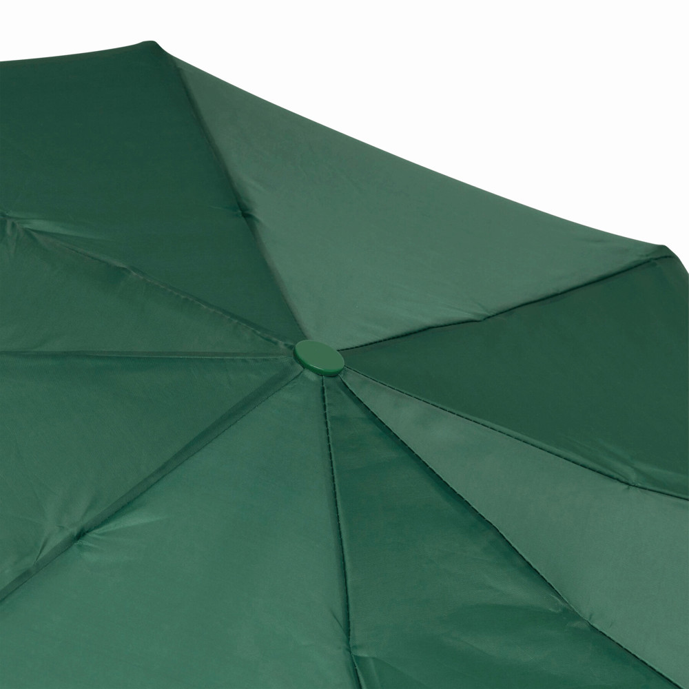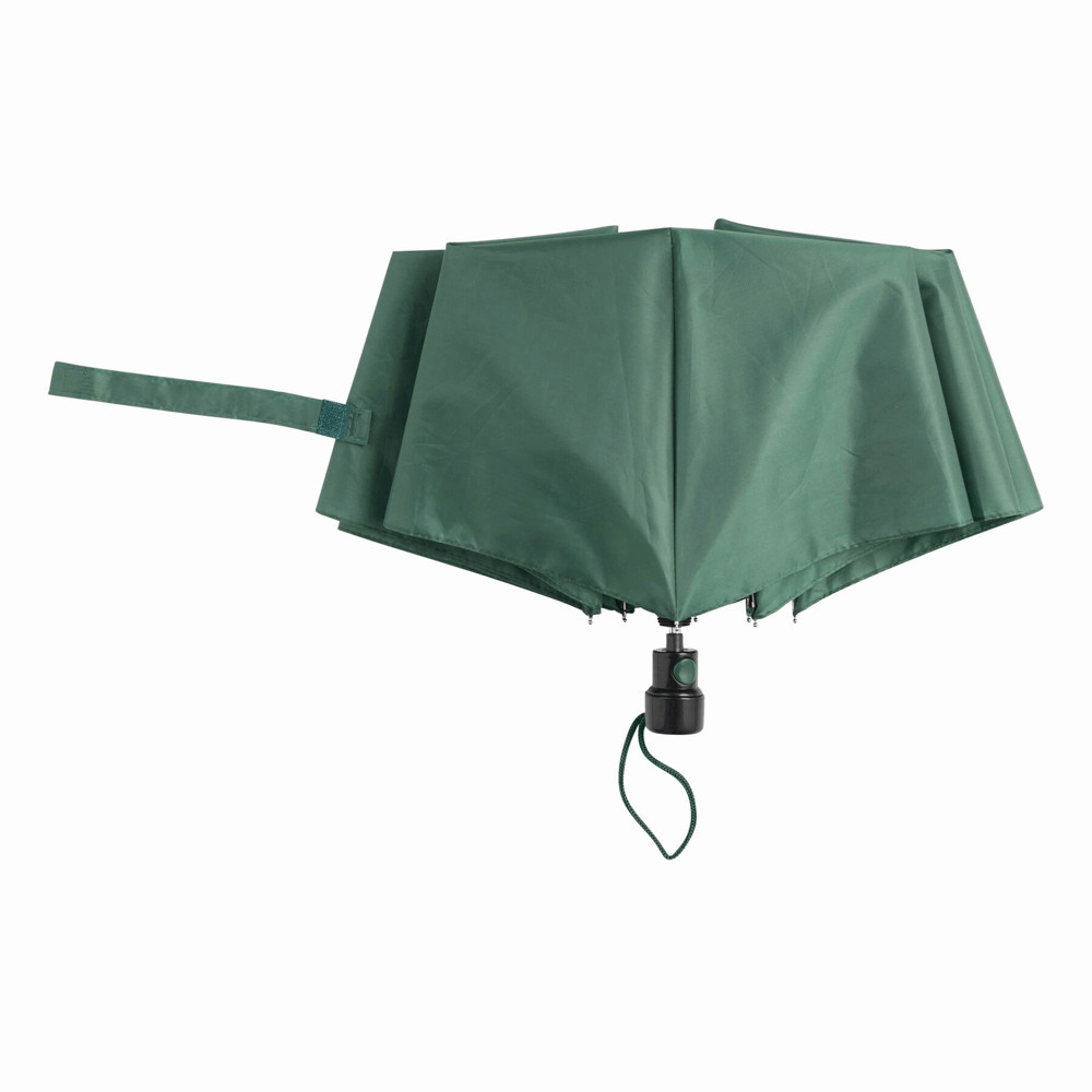Automatik-Taschenschirm PRIMA, im farblich abgestimmten Futteral: 3-teiliger Metallstock, Metallspeichen und -tips, schwarzer Kunststoffknauf mit farblich abgestimmter Automatik-Auslösetaste und Handschlaufe, Polyester-Bespannung und Schließband mit Klettverschluss