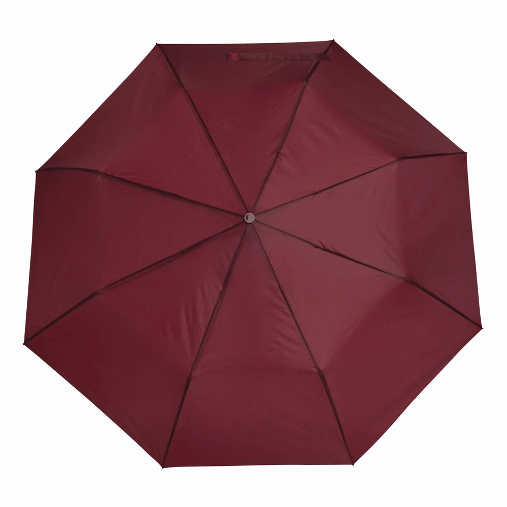 Automatik-Taschenschirm PRIMA, im farblich abgestimmten Futteral: 3-teiliger Metallstock, Metallspeichen und -tips, schwarzer Kunststoffknauf mit farblich abgestimmter Automatik-Auslösetaste und Handschlaufe, Polyester-Bespannung und Schließband mit Klettverschluss