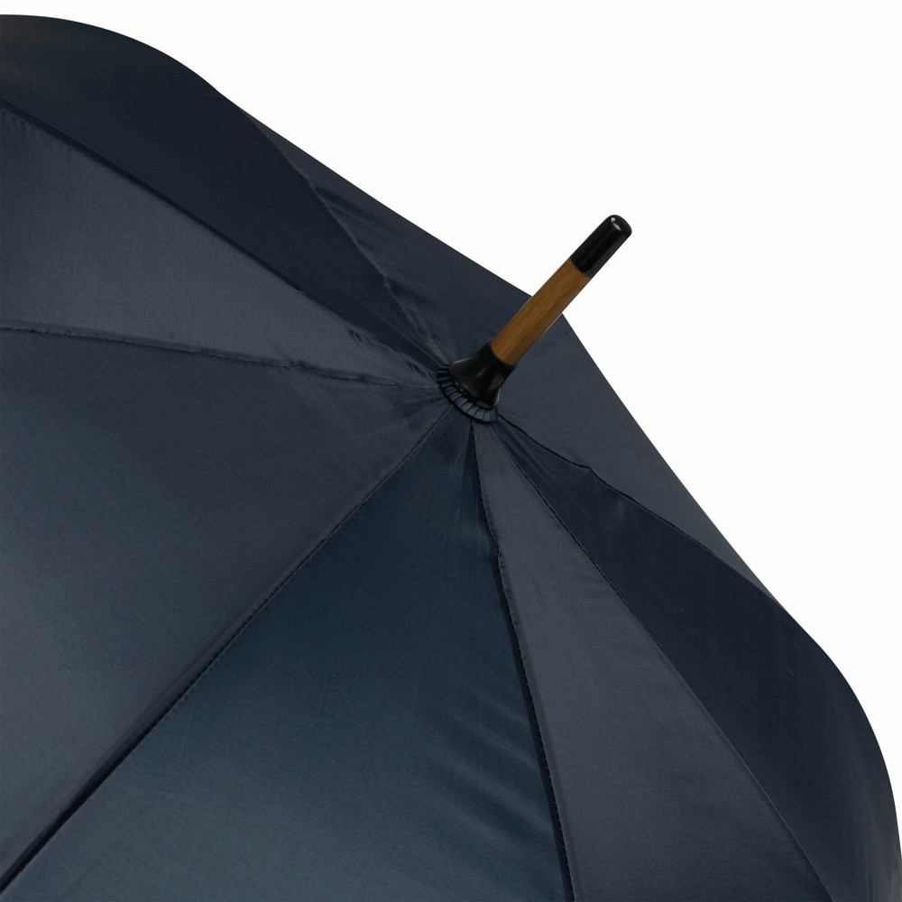 Automatik-Holzstockschirm TANGO: Metallspeichen, Holztips und -Rundhakengriff, Polyester-Bespannung, Schließband mit Klettverschluss
