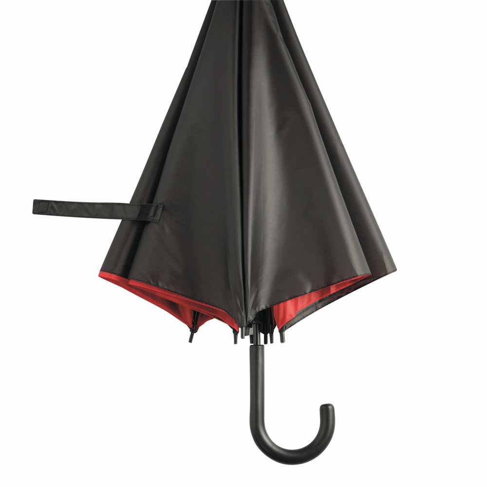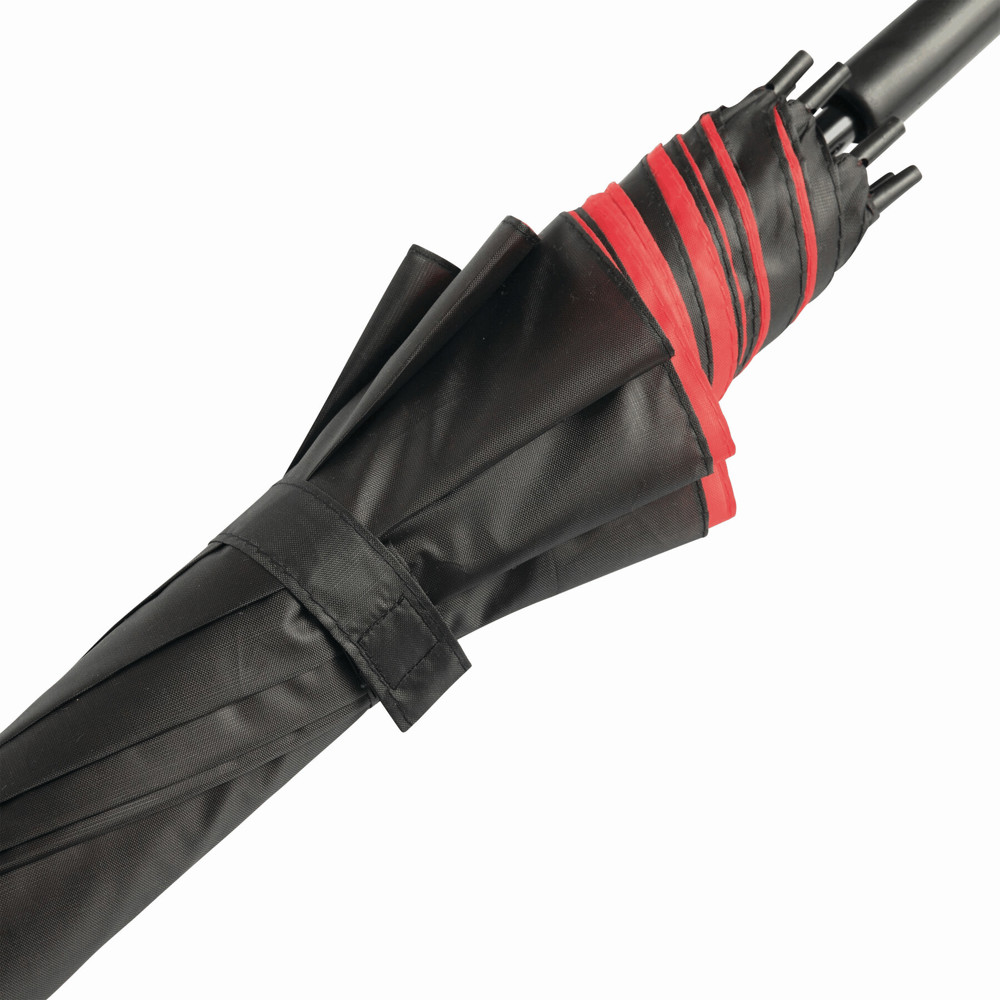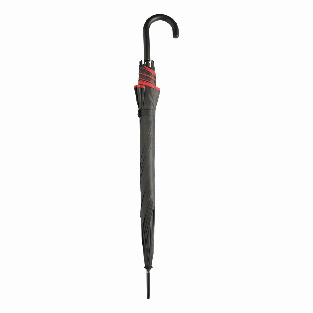 Automatik-Stockschirm DOUBLY: Metallstock und -speichen, Kunststofftips und -Rundhakengriff, doppelt bespanntes und zweifarbiges Schirmdach, Polyester-Bespannung, Schließband mit Klettverschluss