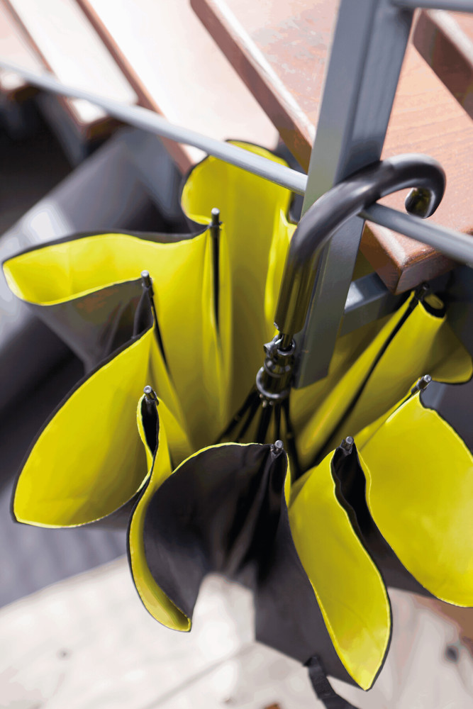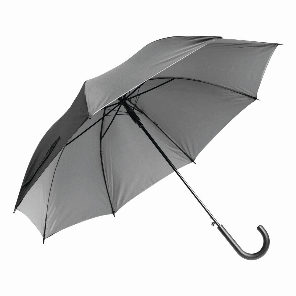 Automatik-Stockschirm DOUBLY: Metallstock und -speichen, Kunststofftips und -Rundhakengriff, doppelt bespanntes und zweifarbiges Schirmdach, Polyester-Bespannung, Schließband mit Klettverschluss