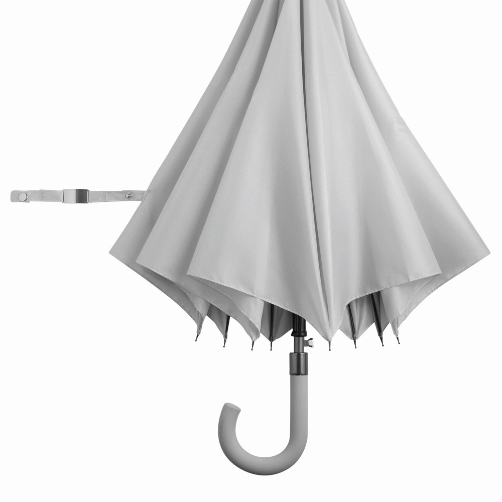 Automatischer Windproof-Stockschirm JUBILEE: Aluminiumstock, Fiberglasspeichen, Metalltips, gummierter und farblich abgestimmter Rundhakengriff, Polyester-Bespannung und -Hülle mit Wabenstruktur, Verschlussband mit Druckknopf und Metall-Platte zur Werbeanbringung