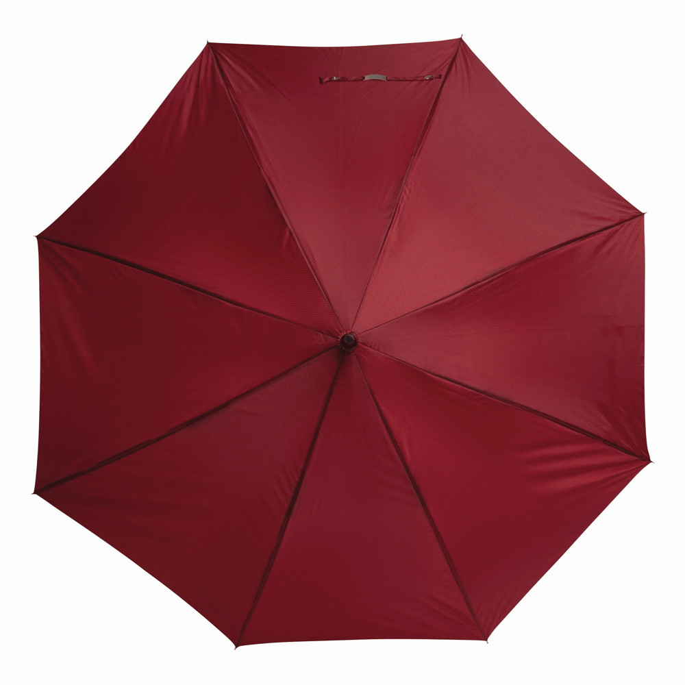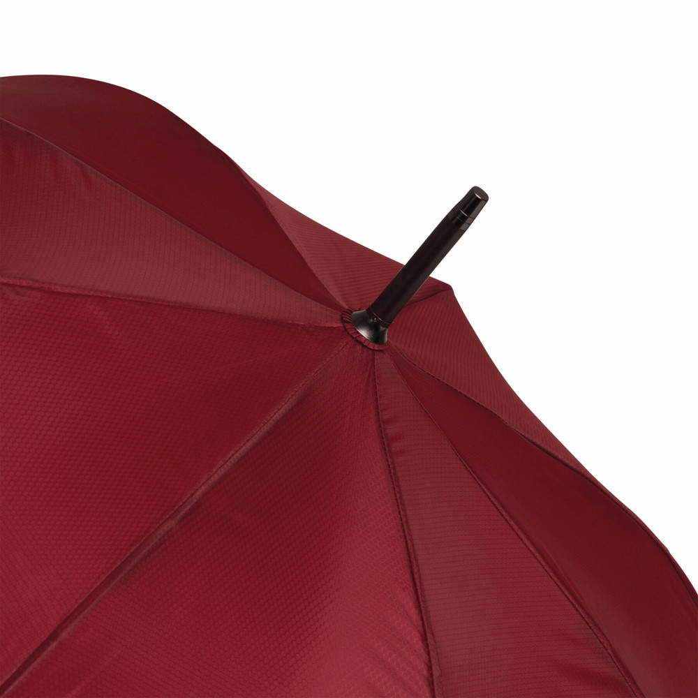 Automatischer Windproof-Stockschirm JUBILEE: Aluminiumstock, Fiberglasspeichen, Metalltips, gummierter und farblich abgestimmter Rundhakengriff, Polyester-Bespannung und -Hülle mit Wabenstruktur, Verschlussband mit Druckknopf und Metall-Platte zur Werbeanbringung