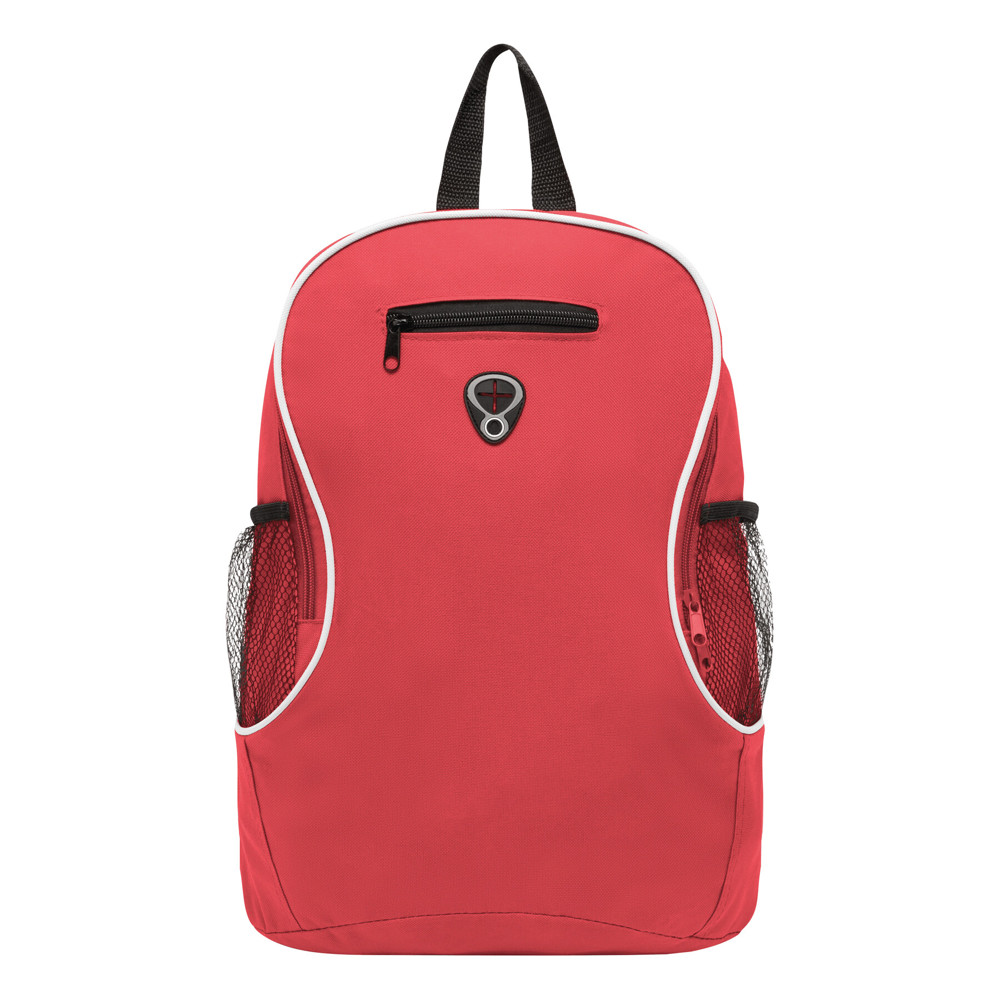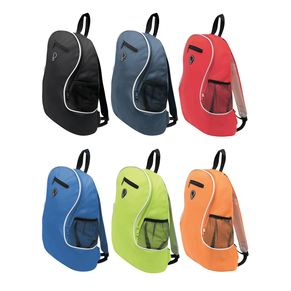 Rucksack TEC: Reißverschluss-Vorfach mit Kopfhörer-Kabelausgang, Reißverschluss-Hauptfach, Trageschlaufe, 2 seitliche Netzfächer, gepolsterte Schultergurte