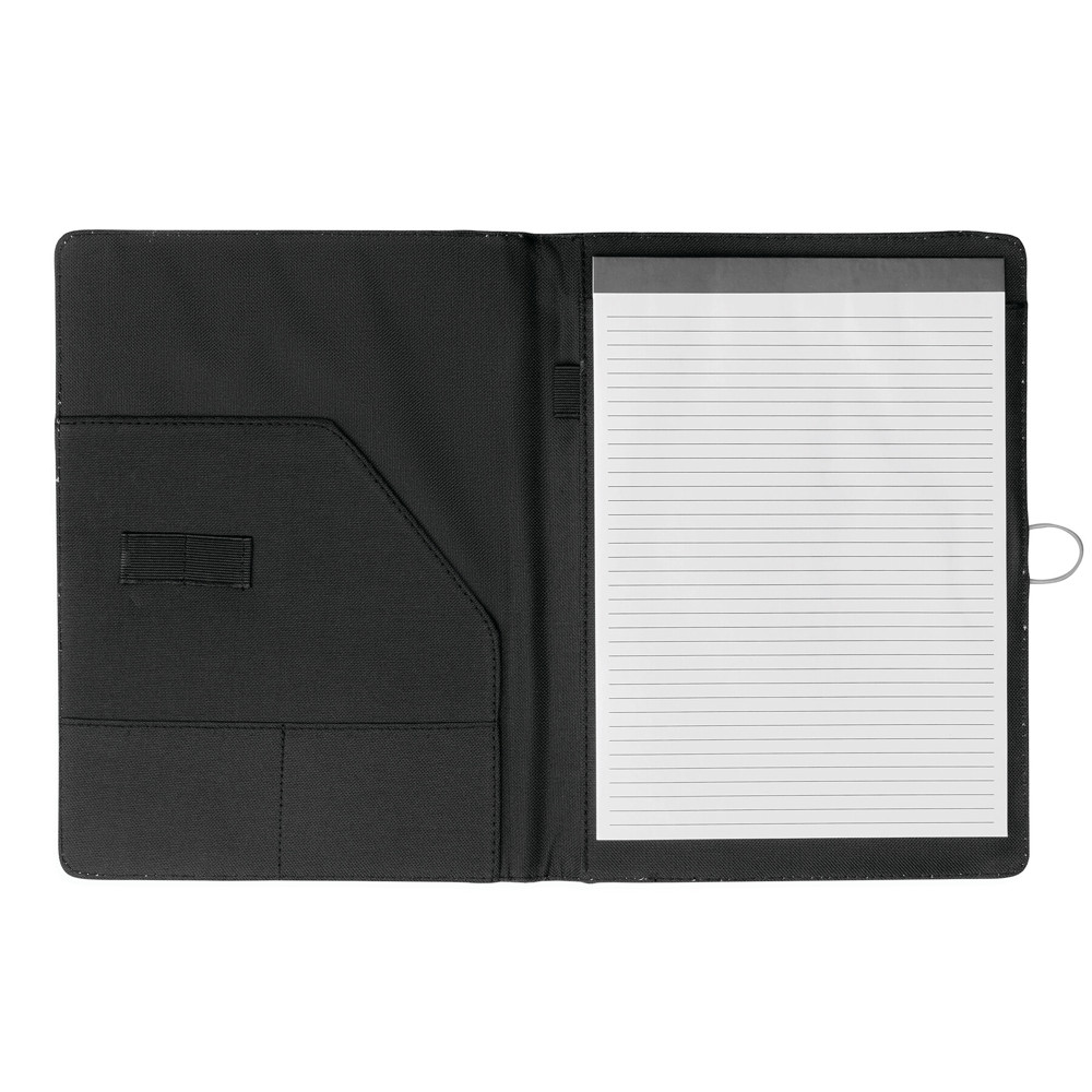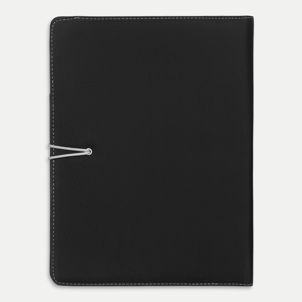 Konferenzmappe SESSION im DIN-A4-Format: Metallhaken mit farbigem Gummiband zum Verschließen, innen diverse Einsteckfächer, 2 elastische Schlaufen, inkl. Schreibblock (liniert), Schlaufe für 1 Schreibgerät, außen mit farbigen Ziernähten