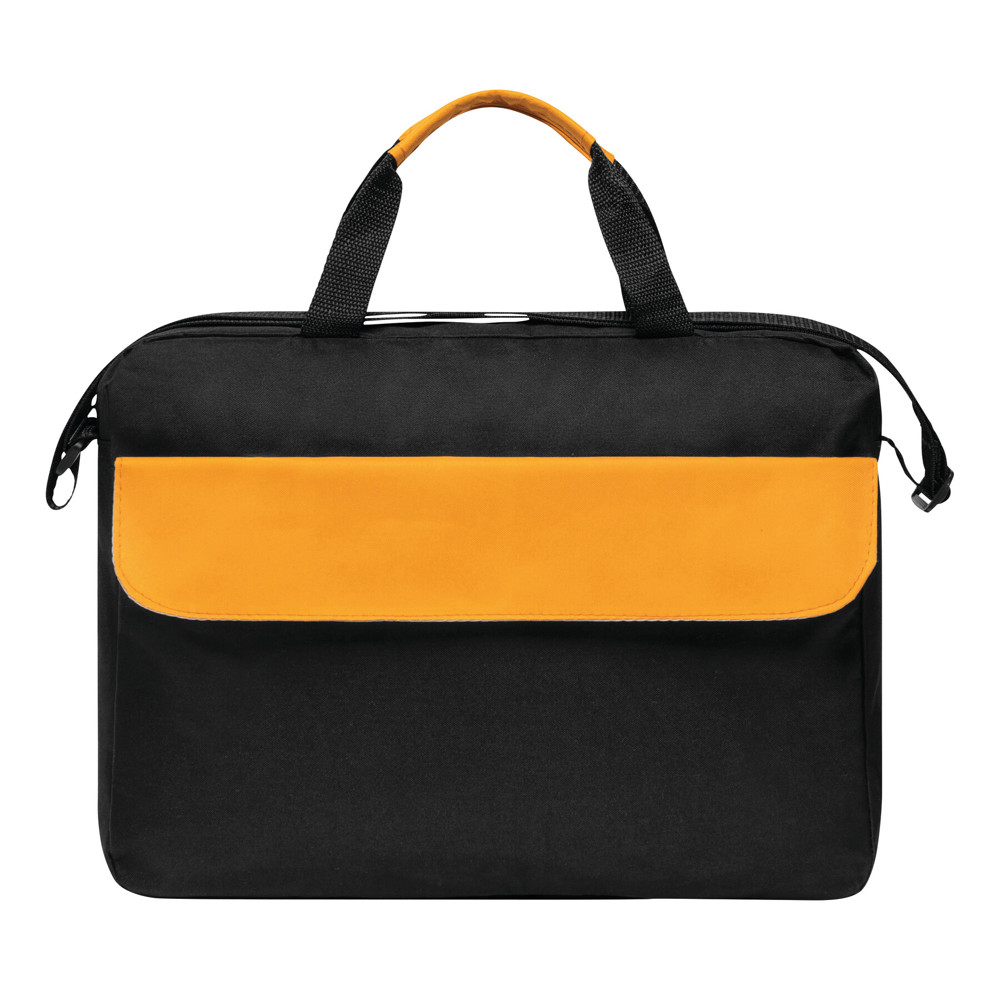 Dokumententasche BRISTOL: Klettverschluss-Vorfach mit farblich abgesetztem Umschlag, geräumiges Reißverschluss-Hauptfach, 2 verstärkte und farblich abgesetzte Tragegriffe, verstellbarer Schultergurt
