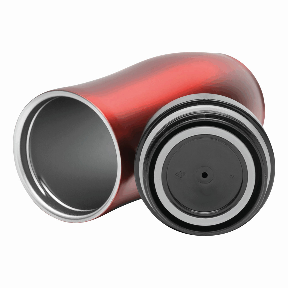 Isolierbecher CLASSICO, doppelwandig: innen und außen aus Edelstahl, Kunststoff-Deckel mit sicherem Schraubverschluss, Push-Button OPEN/CLOSE und integrierter Trinköffnung, gummierter Standfuß für gute Bodenhaftung, Füllmenge ca. 380 ml, in Box