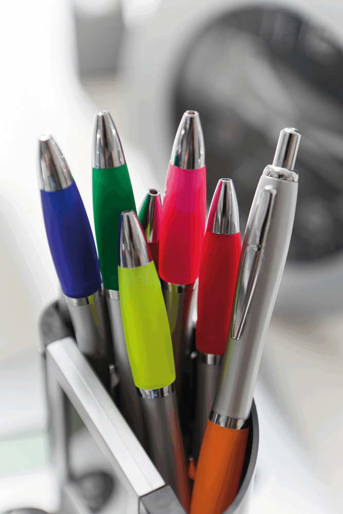 Kugelschreiber SWAY: mit Kunststoff-Schaft in taillierter Form, Druckmechanismus, Großraummine,... mehr