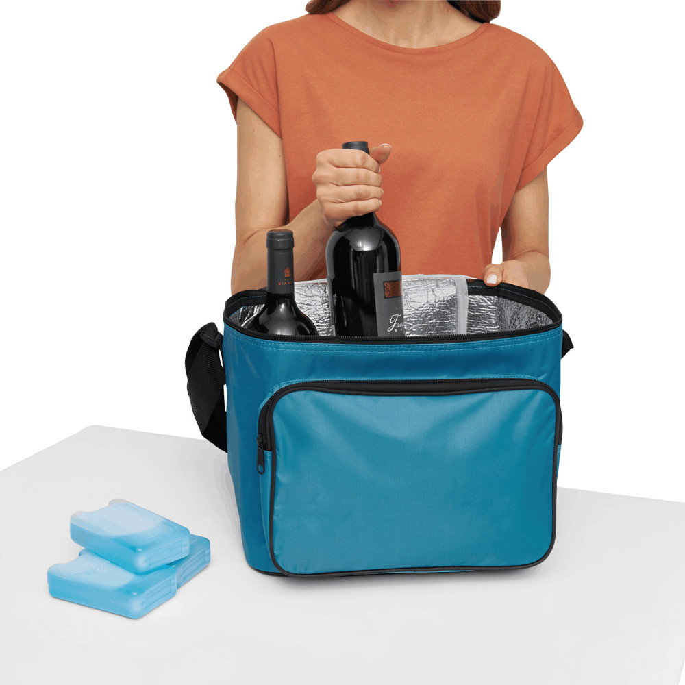 Kühltasche ICE im quadratischen Format: mit isoliertem Reißverschluss-Hauptfach, ein Reißverschlussfach auf der Front, verstellbarer Schultergurt