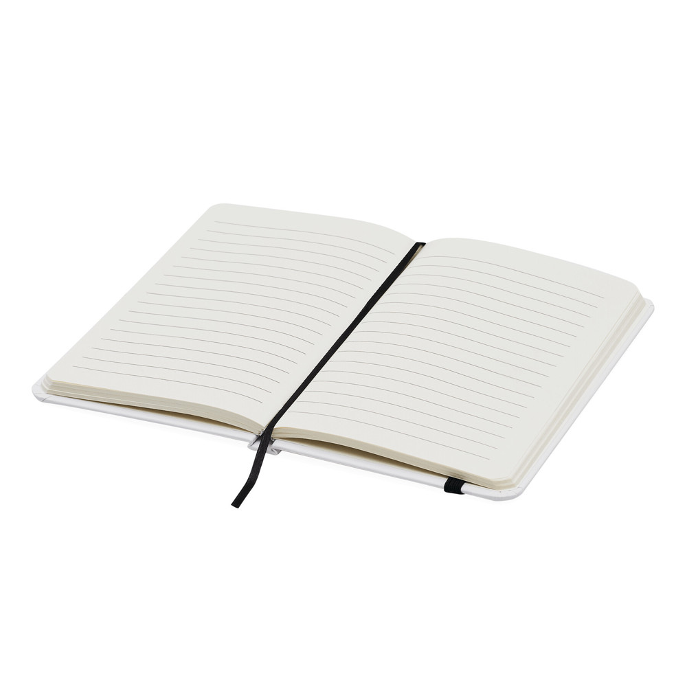 Notizbuch AUTHOR, im DIN-A6-Format: mit abgerundeten Ecken, farbiges Gummiband zum Verschließen, mit integriertem Lesezeichen, 80 Blätter, liniert, 70 g/m²