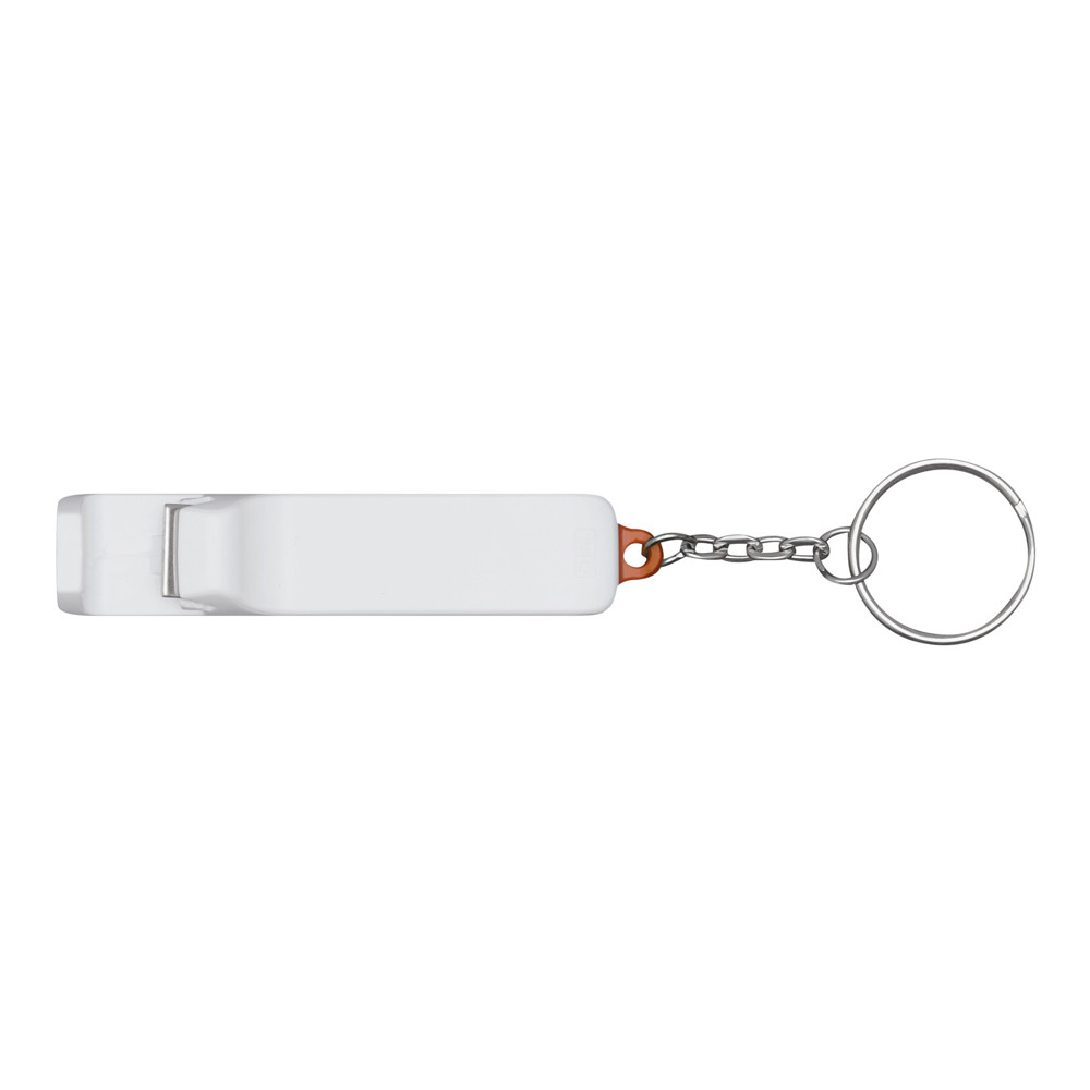 Schlüsselanhänger DOUBLE OPEN: mit ausziehbarem Halter für ein Smartphone, integriertem Flaschenöffner und Schlüsselring
