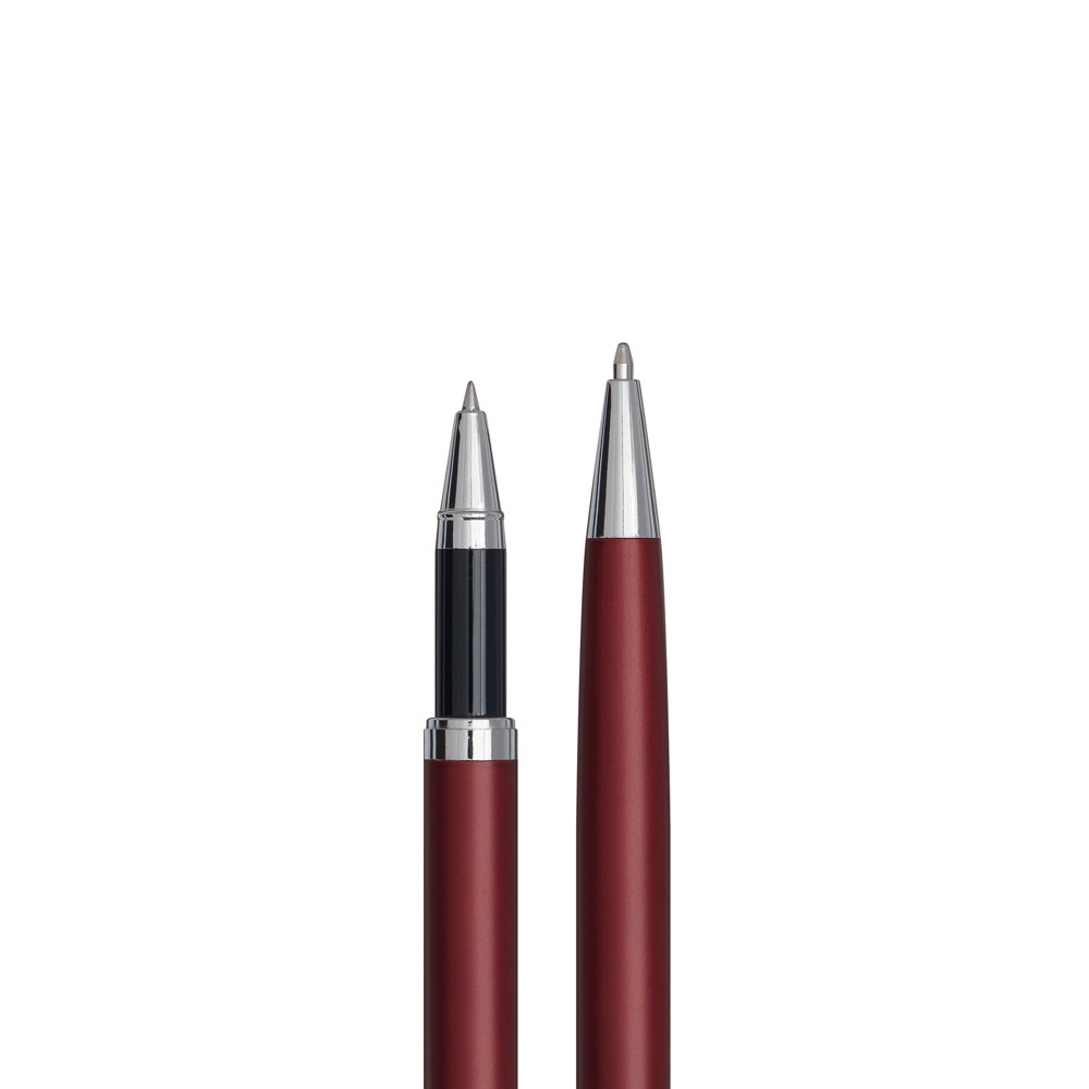 Schreibset ALPHABET, 2-teilig: bestehend aus Kugelschreiber mit Drehmechanismus (schwarzschreibend) sowie Tintenroller mit Verschlusskappe mit Clip (schwarzschreibend), beide Schreibgeräte mit Aluminium-Schaft, in Box