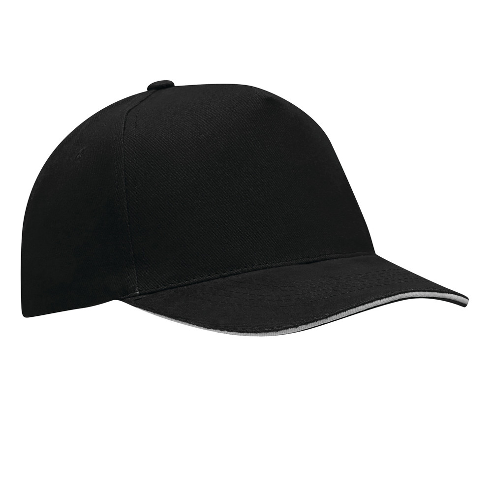 5-Panel-Sandwich-Cap WALK: verstärktes Frontsegment, 4 gestickte Luftlöcher, Knopf, größenverstellbarer Klettverschluss am Hinterkopf, 100% Baumwolle (heavy-brushed)