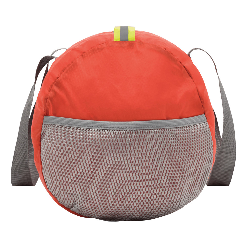 Sporttasche VOLUNTEER GYM, faltbar: Reißverschluss-Vorfach, Reißverschluss-Hauptfach mit 2 Reflektor-Etiketten, 2 seitliche Netzfächer, 2 lange Tragegriffe – lässt sich platzsparend zu einer Mini-Tasche zusammenfalten und passt perfekt in die Handtasche