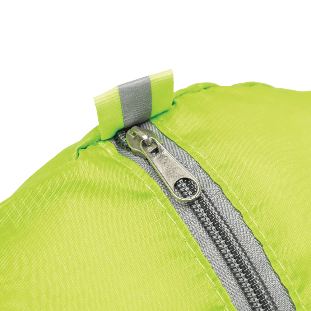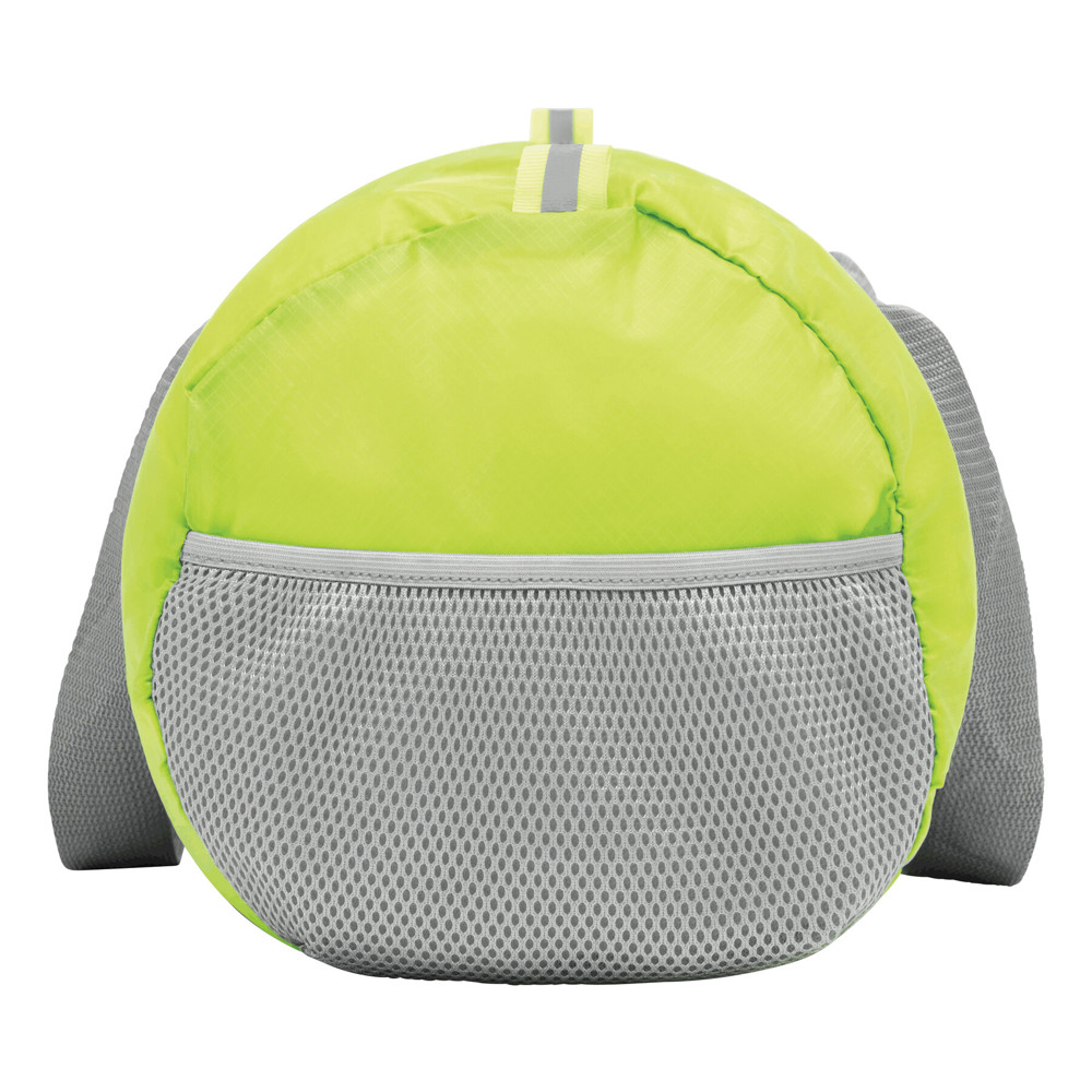 Sporttasche VOLUNTEER GYM, faltbar: Reißverschluss-Vorfach, Reißverschluss-Hauptfach mit 2 Reflektor-Etiketten, 2 seitliche Netzfächer, 2 lange Tragegriffe – lässt sich platzsparend zu einer Mini-Tasche zusammenfalten und passt perfekt in die Handtasche