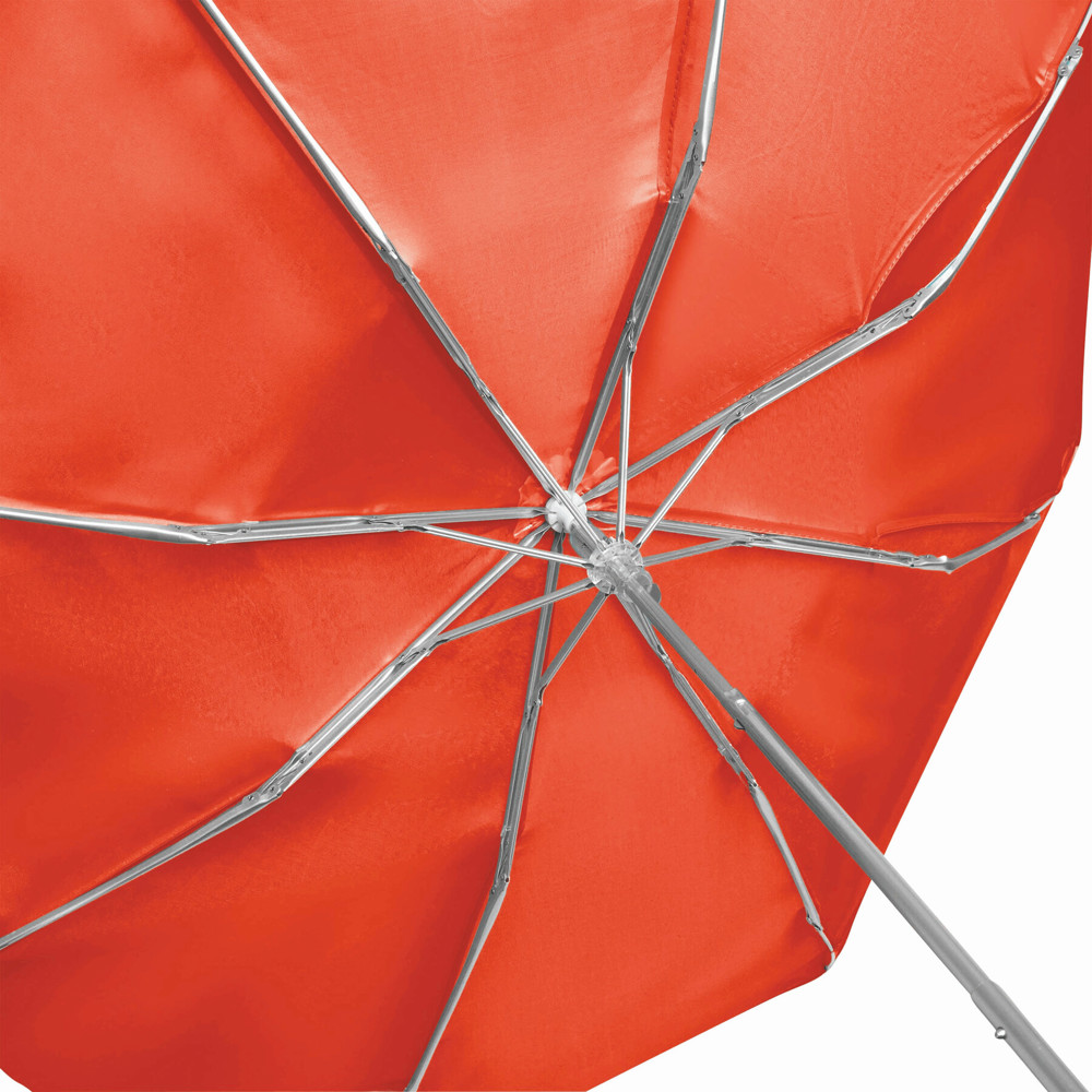 Taschenschirm TWIST mit im Griff integrierter Aufhängefunktion: 204g-leichtes Gestell, 3-teiliger Aluminiumstock, Aluminium- / Fiberglasspeichen, Metalltips, gummierter Griff, Polyester-Pongee-Bespannung und -Hülle, Schließband mit Klettverschluss