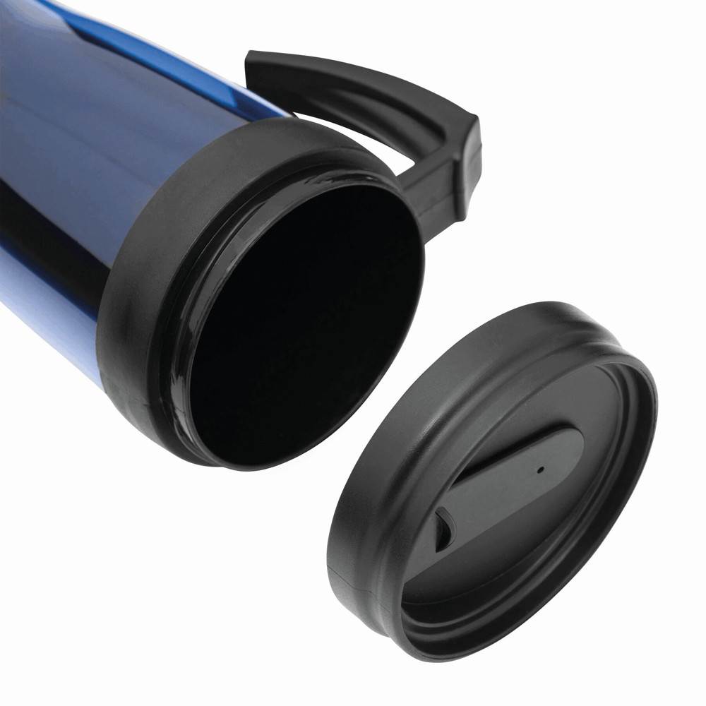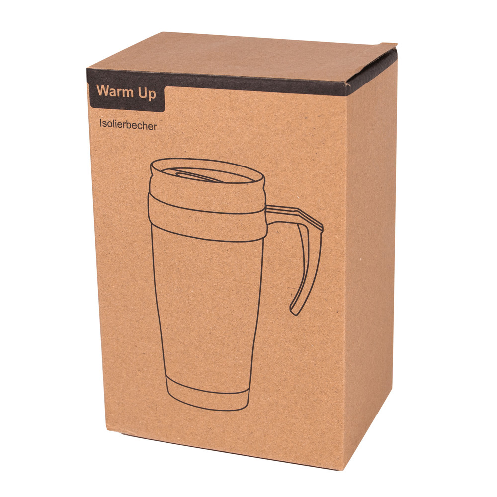 Trinkbecher WARM-UP, doppelwandig: innen und außen aus Kunststoff, mit praktischem Kunststoffgriff und Trinköffnung im Deckel, Füllmenge ca. 400 ml, in Box