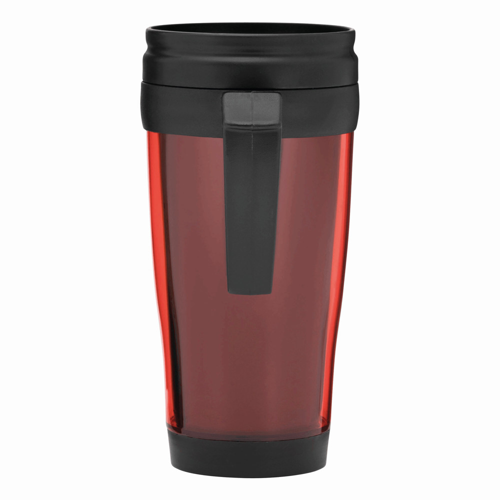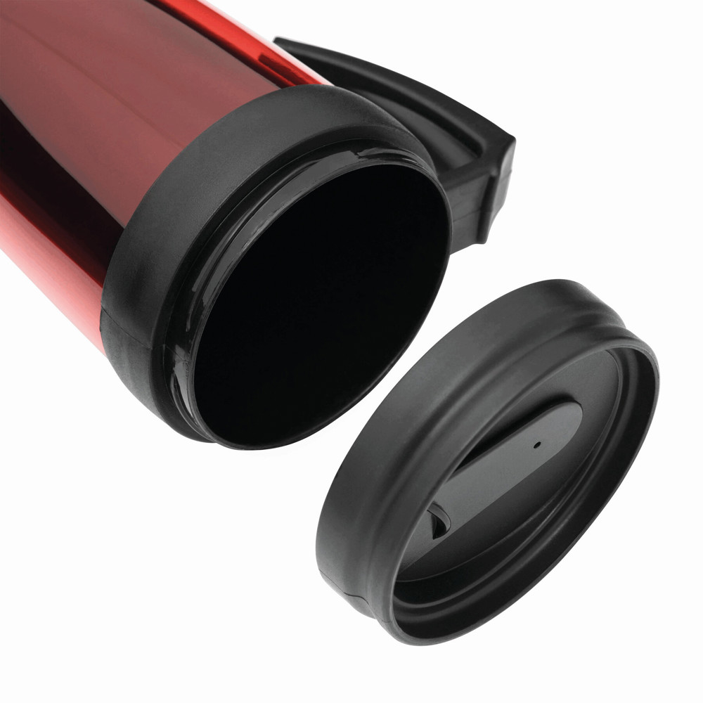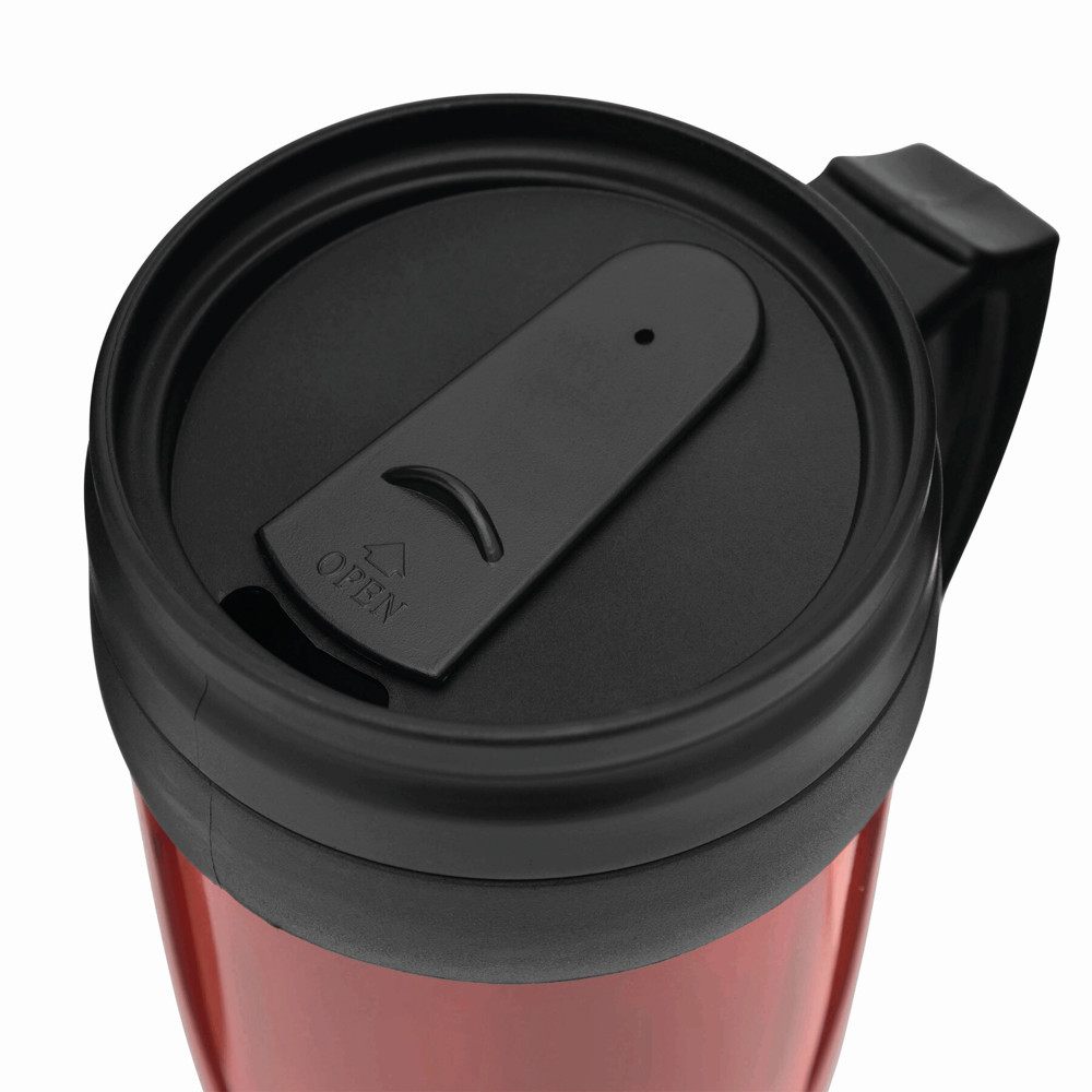 Trinkbecher WARM-UP, doppelwandig: innen und außen aus Kunststoff, mit praktischem Kunststoffgriff und Trinköffnung im Deckel, Füllmenge ca. 400 ml, in Box