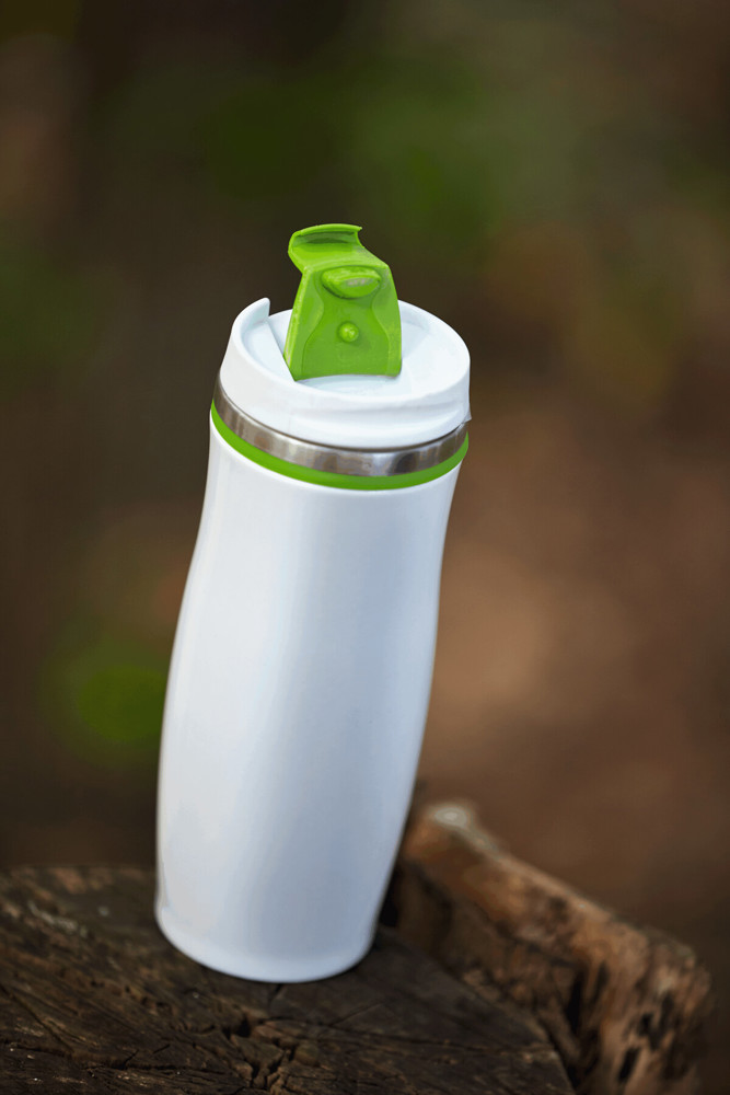Isolierbecher CREMA, doppelwandig: innen und außen aus Edelstahl, Kunststoff-Deckel mit sicherem... mehr