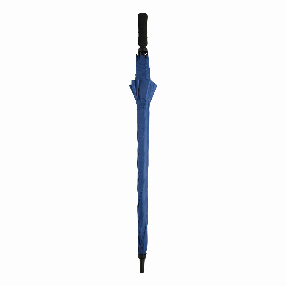Sturmschirm TORNADO: Fiberglasstock, Doppelmetallspeichen und Rückholautomatik-Feder, Kunststofftips, Moosgummigriff, Polyester-Bespannung, Schließband mit Klettverschluss