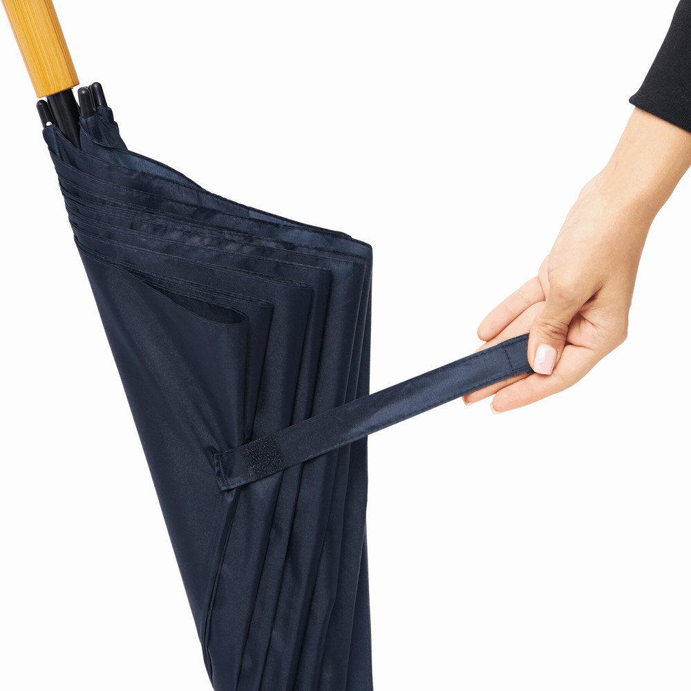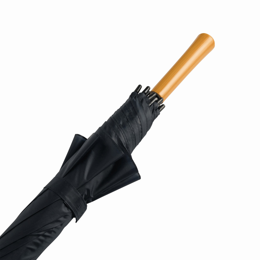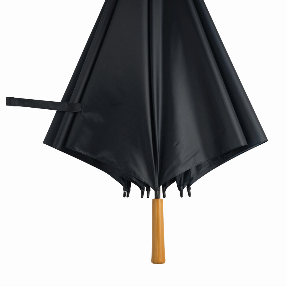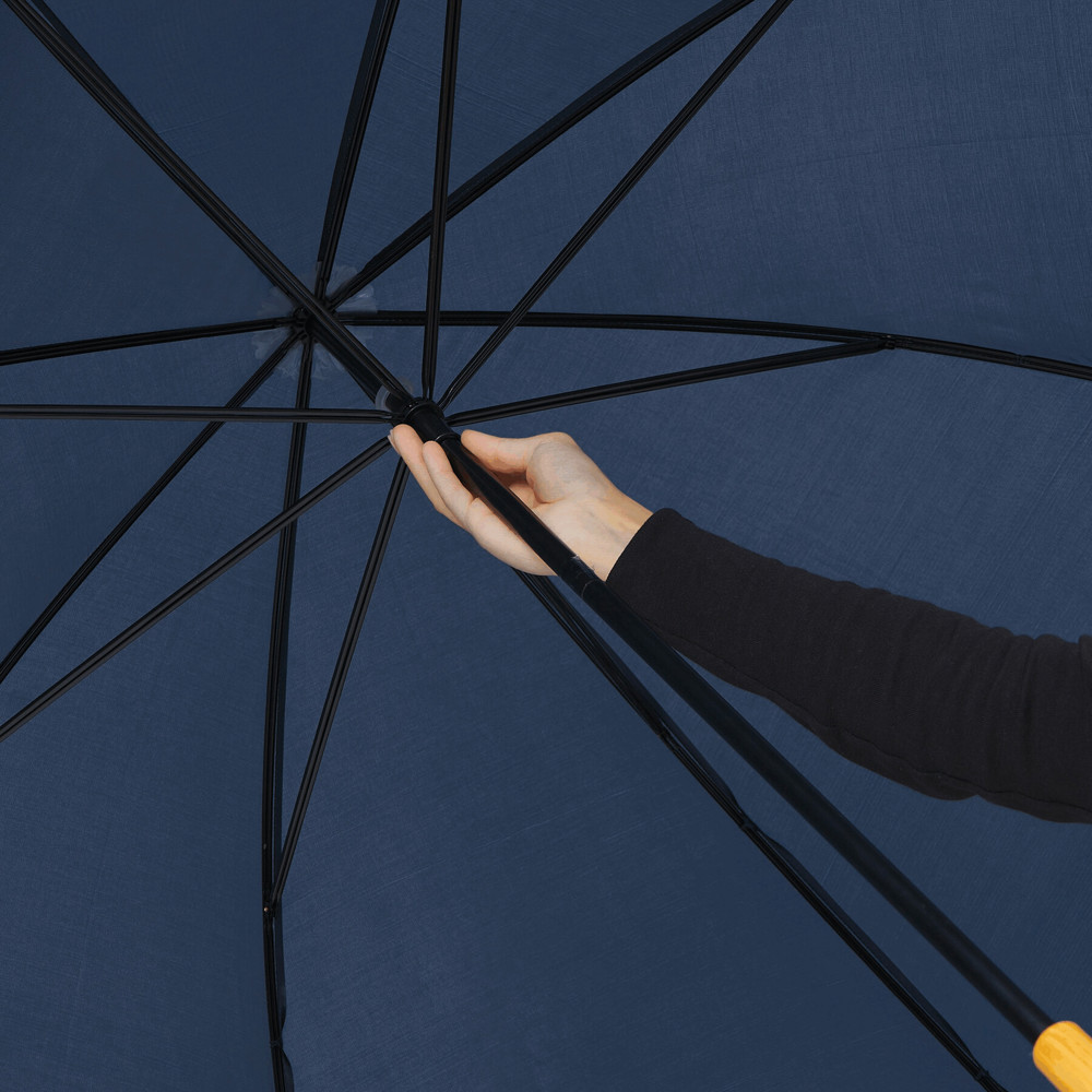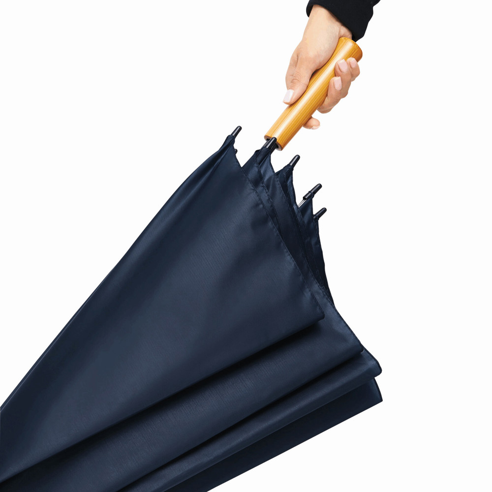 Golfschirm RAINDROPS: Metallstock und Doppelmetallspeichen, Kunststofftipps, Griff in Holz-Optik, Polyester-Bespannung, Schließband mit Klettverschluss
