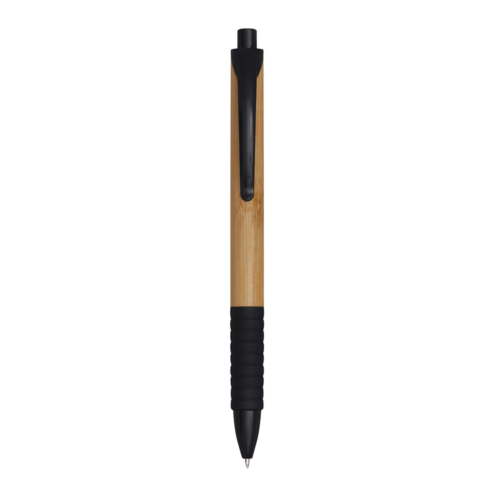 Kugelschreiber BAMBOO RUBBER: mit elegantem Bambus-Schaft, gummierter Griffzone, Druckmechanismus, Großraummine, blauschreibend