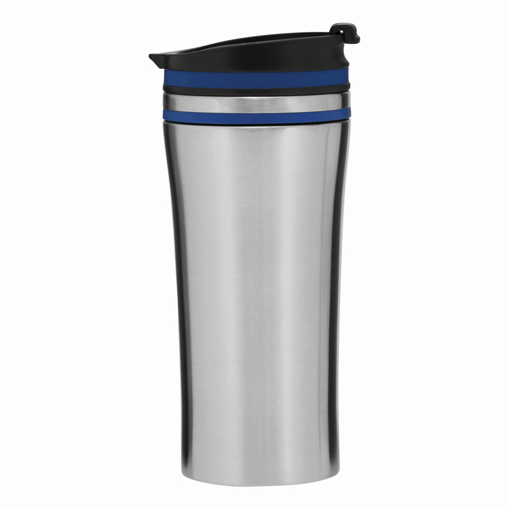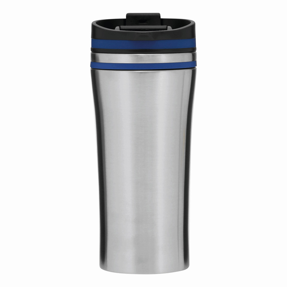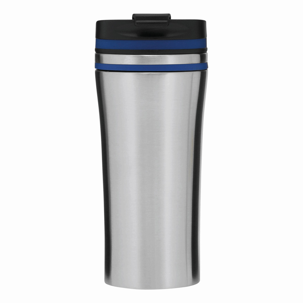 Isolierbecher LIBERICA, doppelwandig: innen und außen aus Edelstahl, Deckel mit sicherem Schraubverschluss und integrierter Trinköffnung zum Aufklappen, farbige Applikation, Füllmenge ca. 400 ml