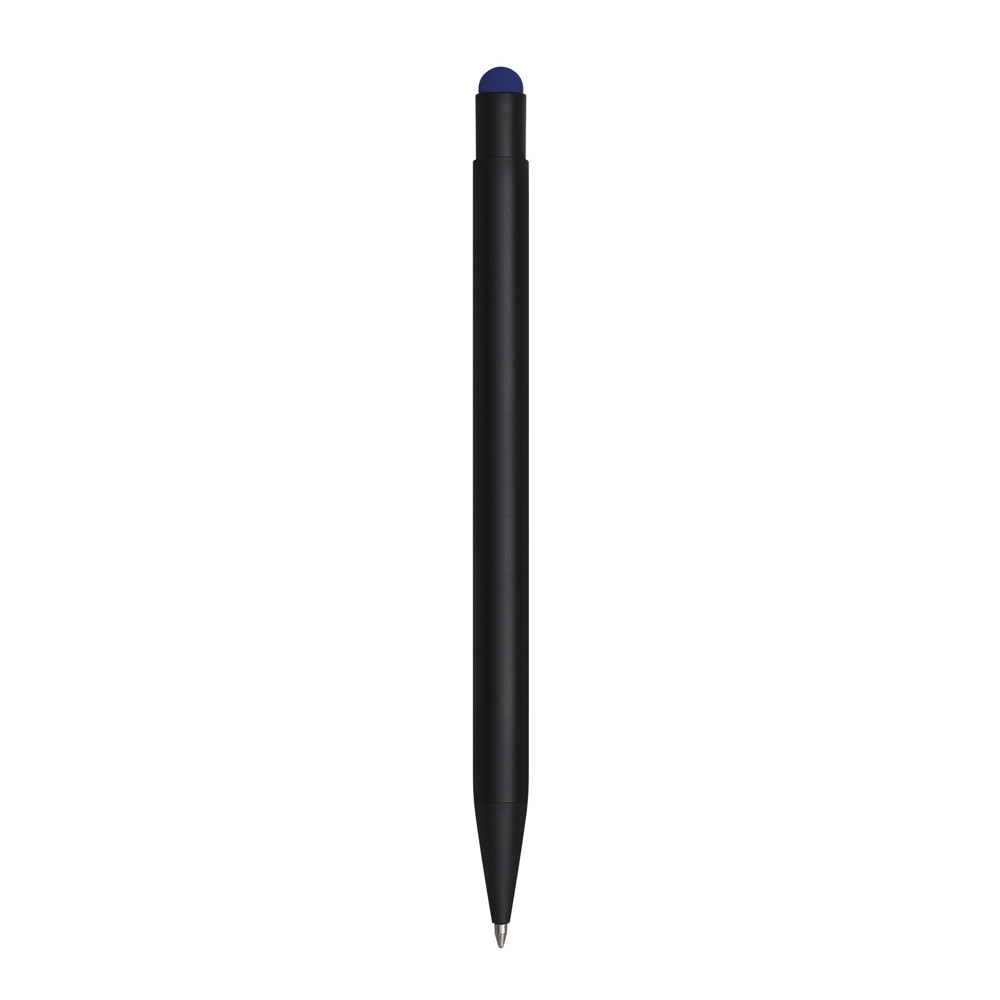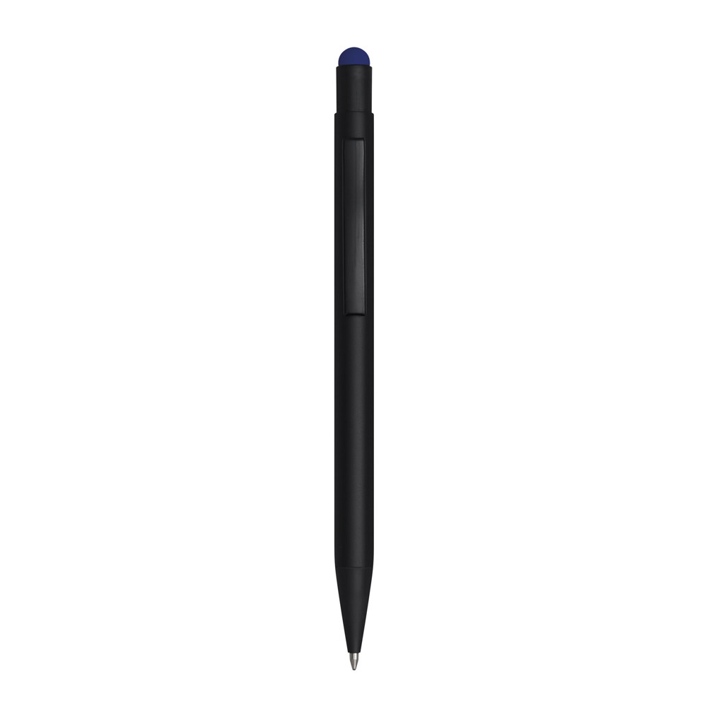 Aluminium-Kugelschreiber BLACK BEAUTY: mit mattem Aluminium-Schaft und farbiger Unterlegung für eine Gravur passend zur Farbe der Touchscreen-Spitze, Druckmechanismus, Großraummine, am Schaftende mit farbiger Touchscreen-Spitze, blauschreibend