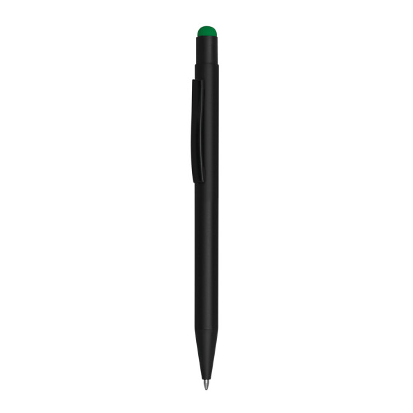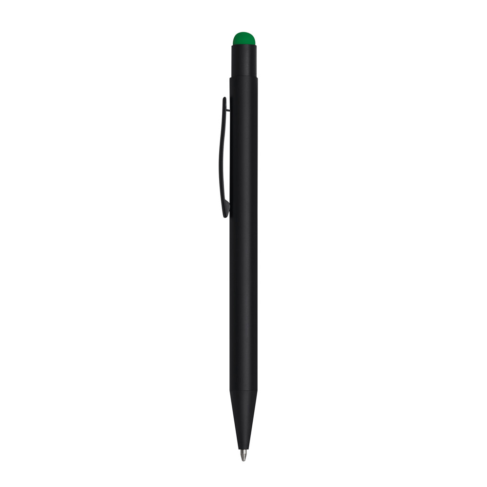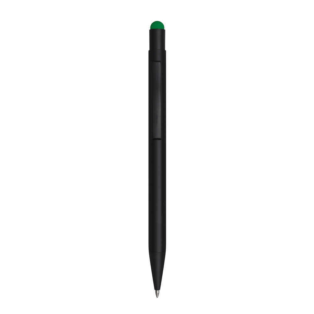 Aluminium-Kugelschreiber BLACK BEAUTY: mit mattem Aluminium-Schaft und farbiger Unterlegung für eine Gravur passend zur Farbe der Touchscreen-Spitze, Druckmechanismus, Großraummine, am Schaftende mit farbiger Touchscreen-Spitze, blauschreibend