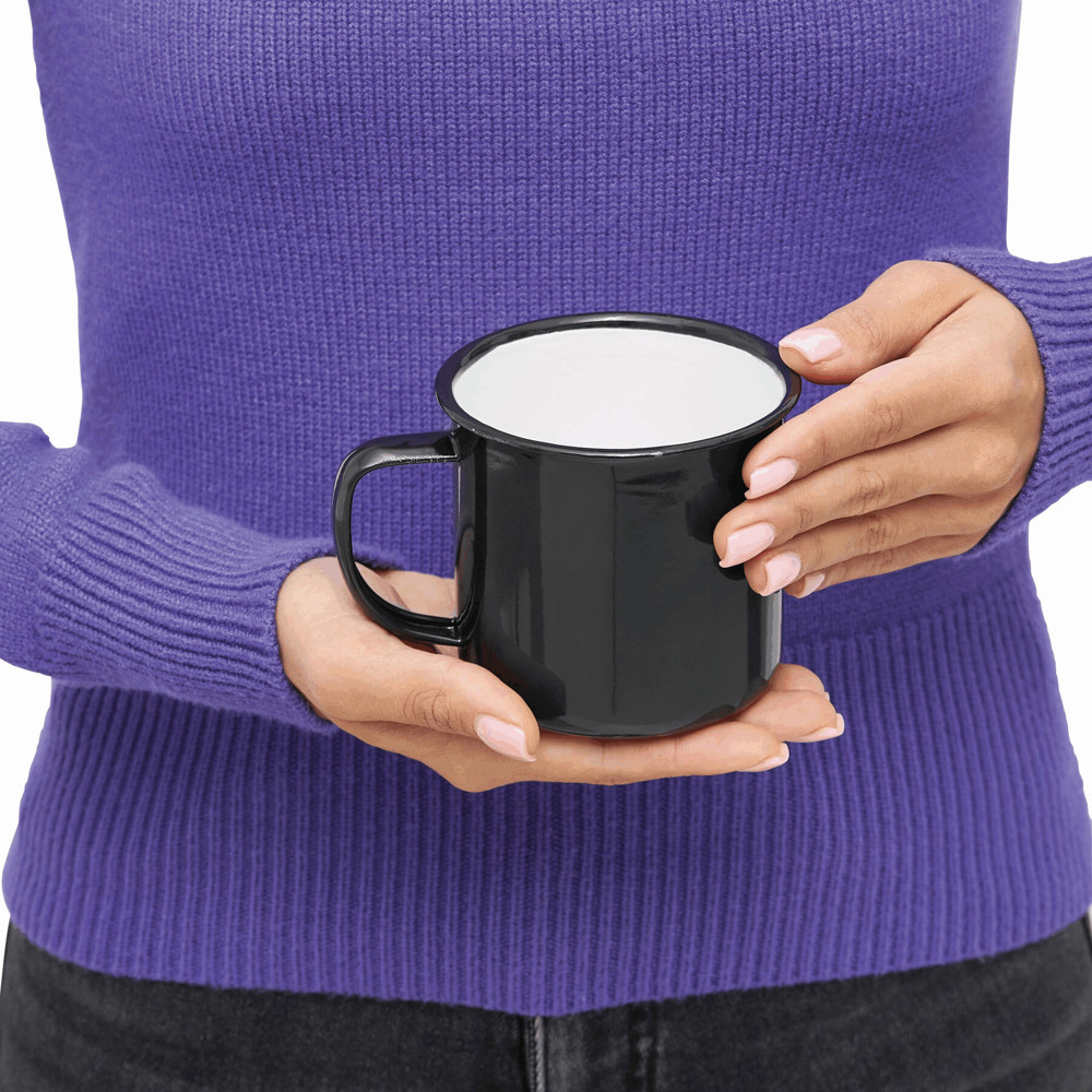 Emaille-Becher RETRO CUP: mit Henkel, außen farbig und innen weiß, Füllmenge ca. 350 ml mehr