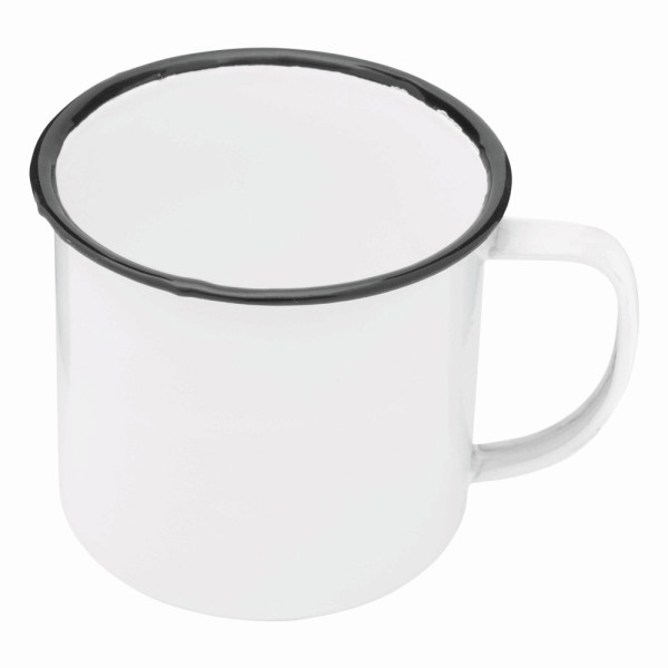 Emaille-Becher RETRO CUP: mit Henkel, außen farbig und innen weiß, Füllmenge ca. 350 ml mehr