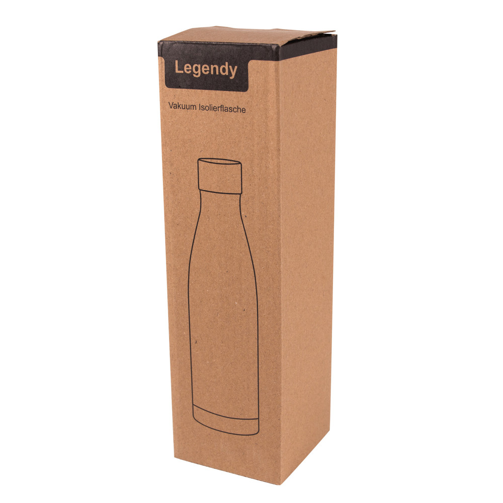 Vakuum-Trinkflasche LEGENDY, doppelwandig: innen und außen aus Edelstahl, Deckel mit sicherem Schraubverschluss und Silikon-Dichtring, Füllmenge ca. 500 ml, hält ca. 12 Stunden warm und bis zu 24 Stunden kalt, in Box