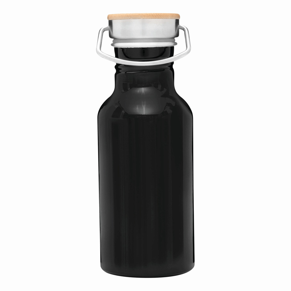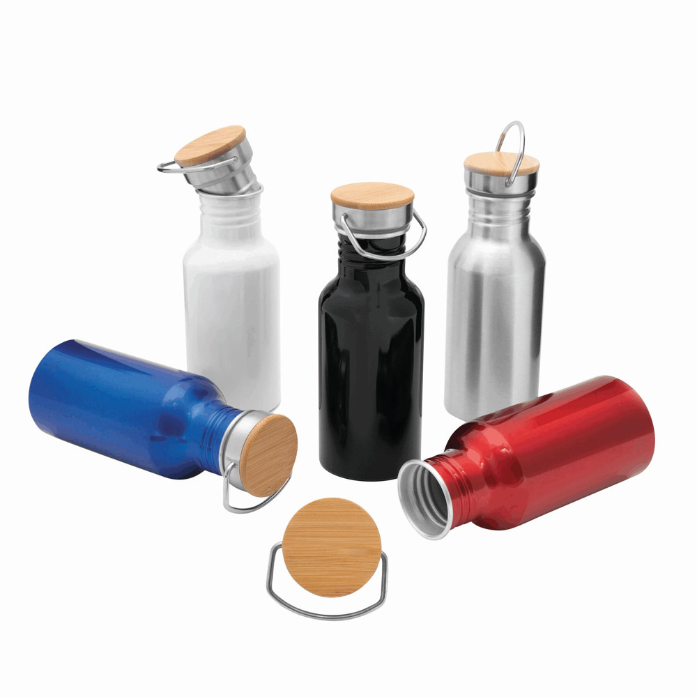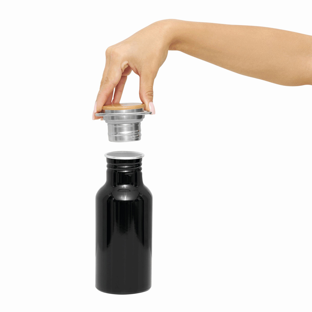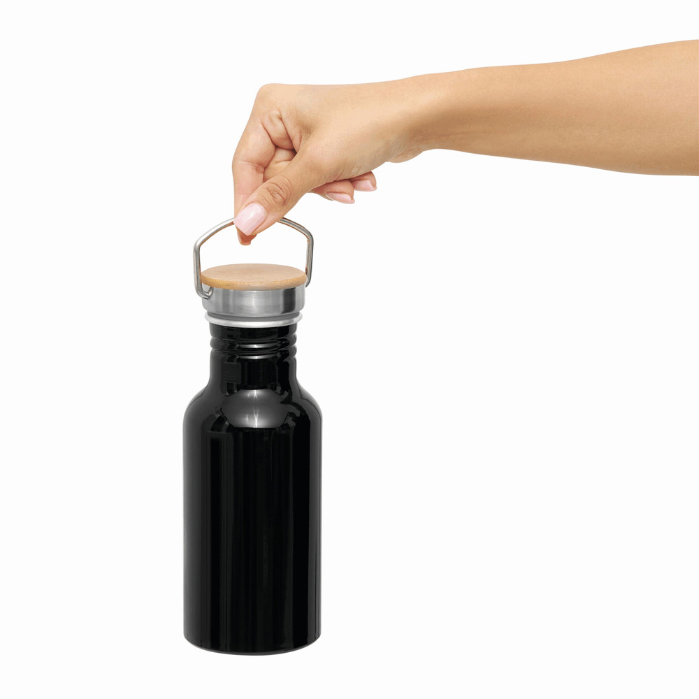 Aluminium Trinkflasche ECO TRANSIT: einwandig, Bambus-Deckel mit sicherem Schraubverschluss und Tragegriff, Füllmenge: ca. 550 ml