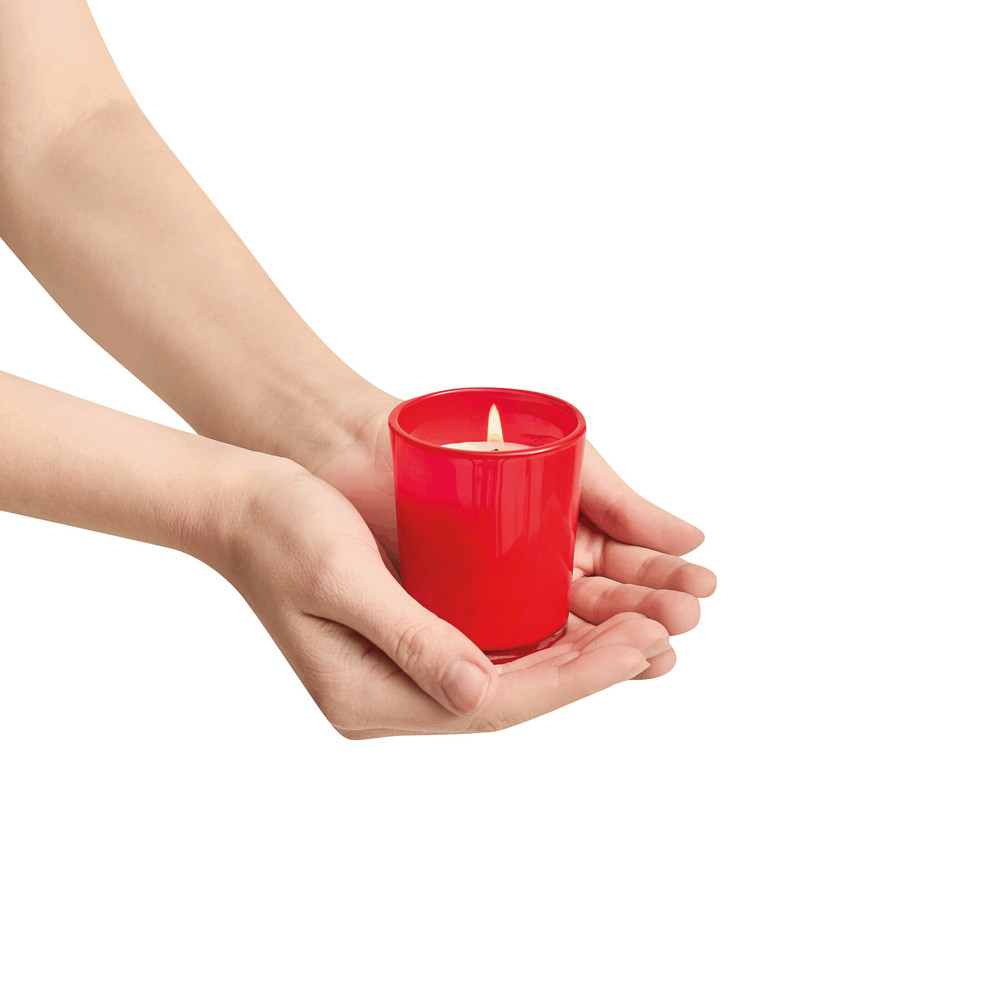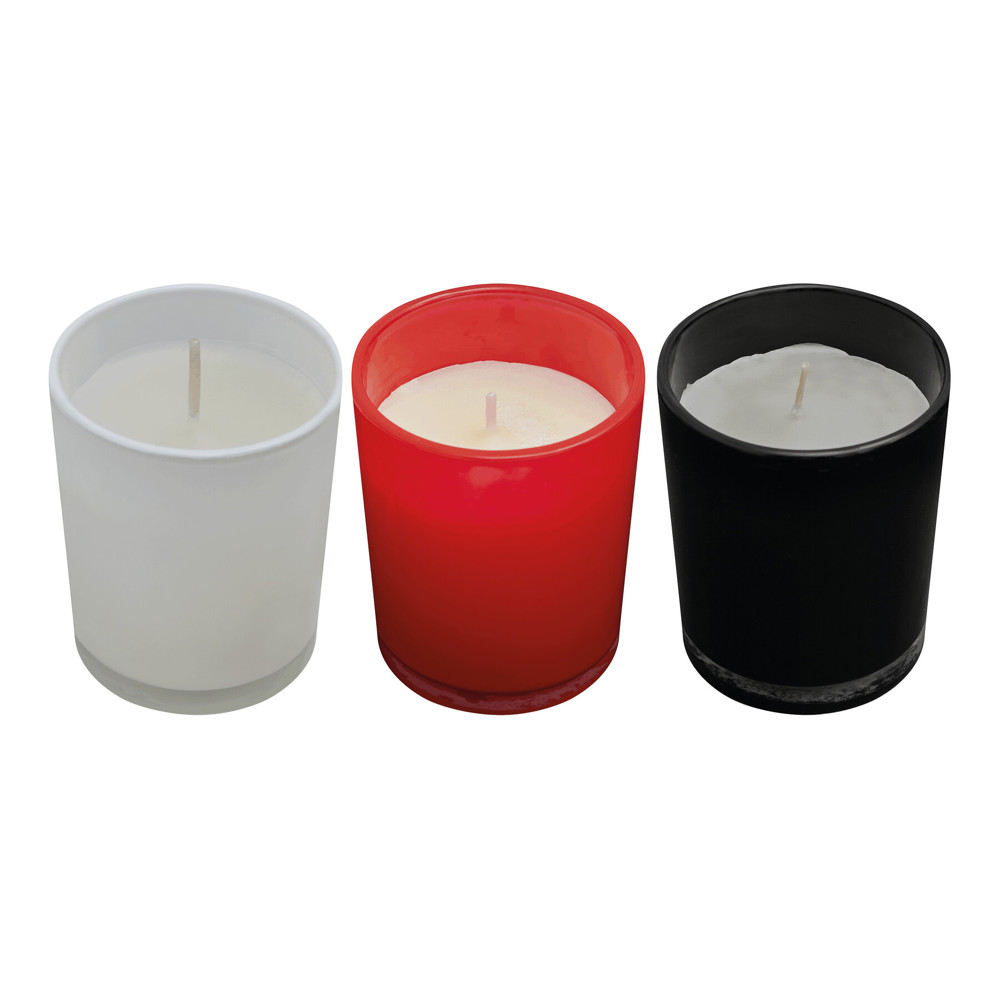 Kerze SPHERE: im farbigen, runden Glasbehälter, weißes Wachs, Brenndauer ca. 12 Stunden
