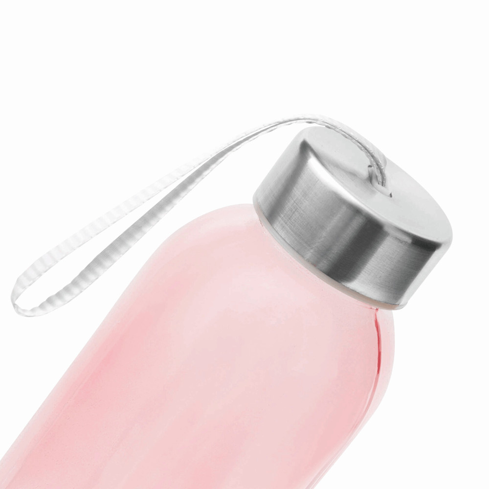 Glas-Trinkflasche TAKE SMART: Edelstahldeckel mit Schraubverschluss, Silikon-Dichtring und Handschlaufe, Füllmenge ca. 500 ml, in Geschenkbox