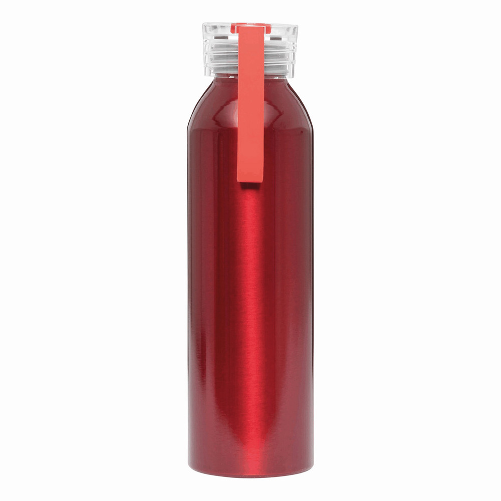 Aluminium Trinkflasche LOOPED, einwandig: transparenter Kunststoffdeckel mit Schraubverschluss, Silikonschlaufe, Füllmenge ca. 650 ml