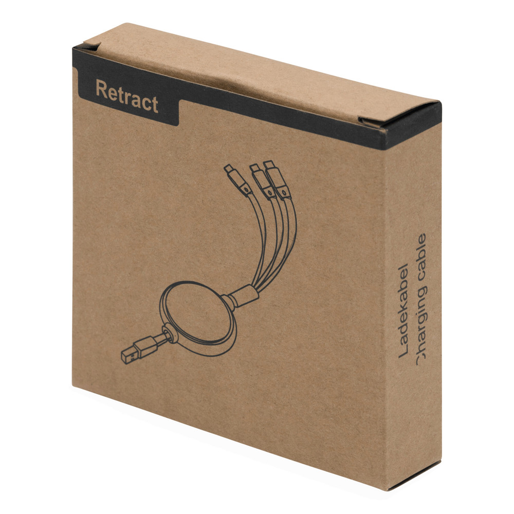 Ladekabel RETRACT, aufrollbar (Länge: ca. 100 cm): zum Aufladen von Smartphones und USB-betriebenen Geräten, inkl. 3 Ladesteckern (USB Typ C, Micro-USB und Lightning®), in Box