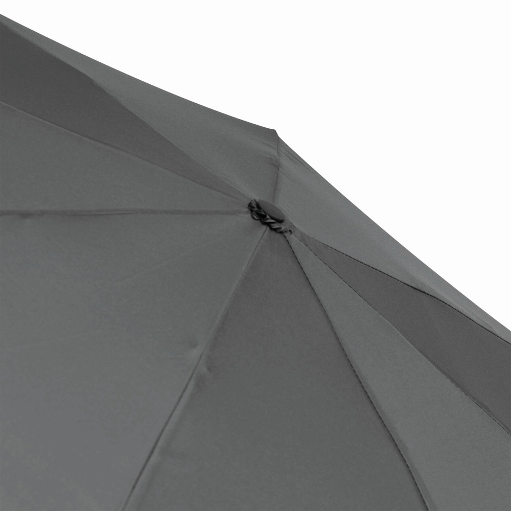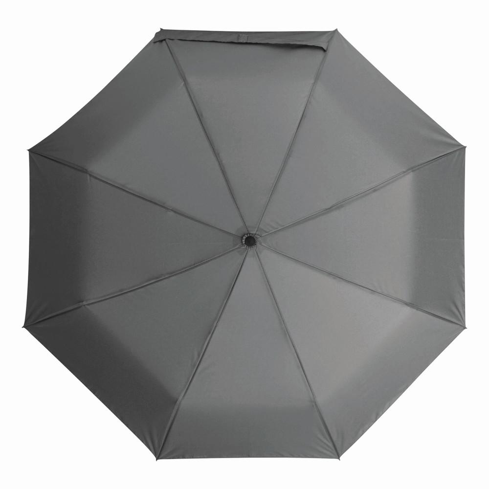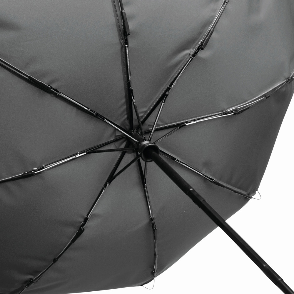 Vollautomatischer Windproof-Taschenschirm CALYPSO in farblich abgestimmtem Futteral: 3-teiliger Metallstock, mit Metall-Kunststoff-Fiberglasspeichen und Metalltips, Bambusgriff mit Handschlaufe, Polyester-Pongee-Bespannung aus recycelten Kunststoffen / RPET, Schließband mit Klettverschluss