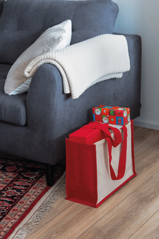 Shopper FUTURE: aus Jute und Canvas, mit langen Baumwoll-Henkeln und farbigen Details