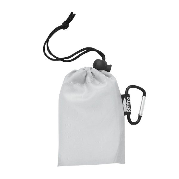 Regenponcho ECO SAFE: mit Kapuze, in Universalgröße, transparent, im RPET-Beutel mit Zuziehband und Karabiner (der Karabiner ist NICHT als Sicherung beim Klettern geeignet)