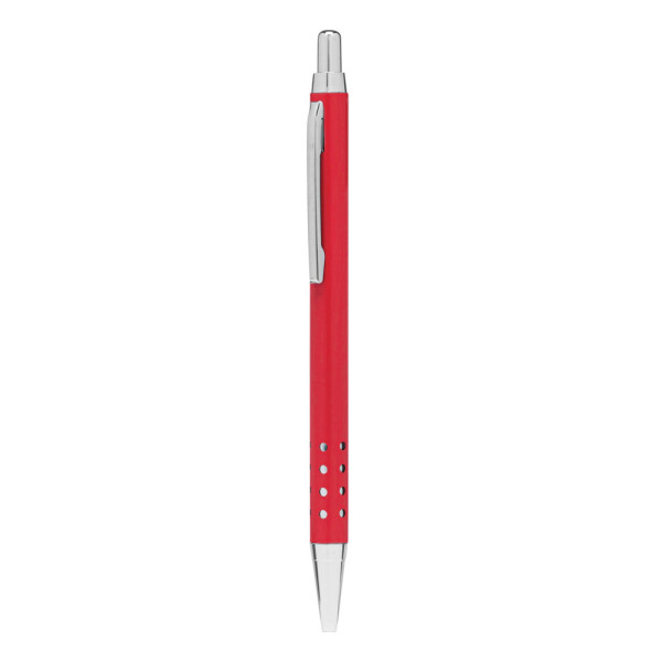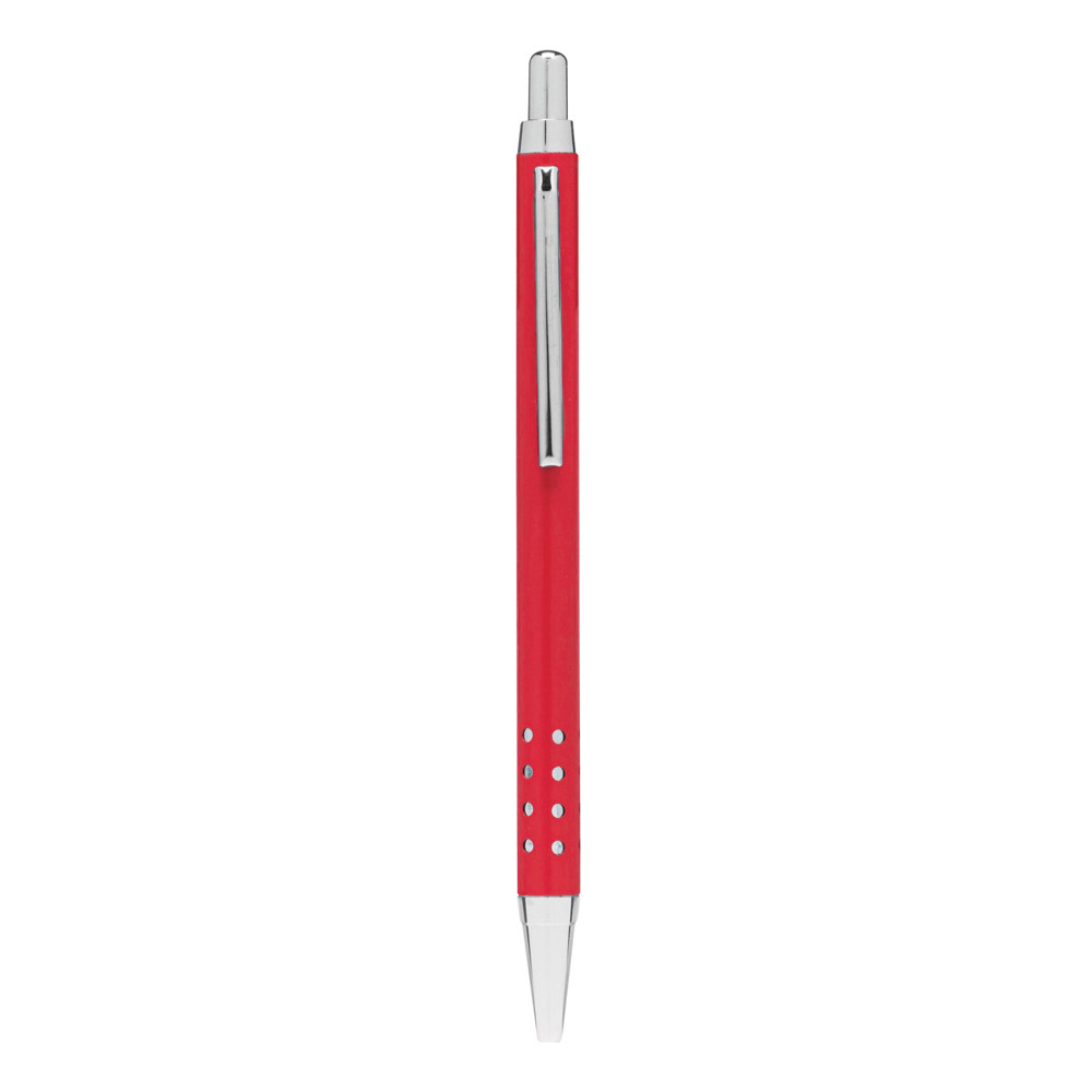 Messing-Kugelschreiber BUDAPEST: mit Metall-Schaft, Griffzone mit Loch-Design, Druckmechanismus, Großraummine, blauschreibend