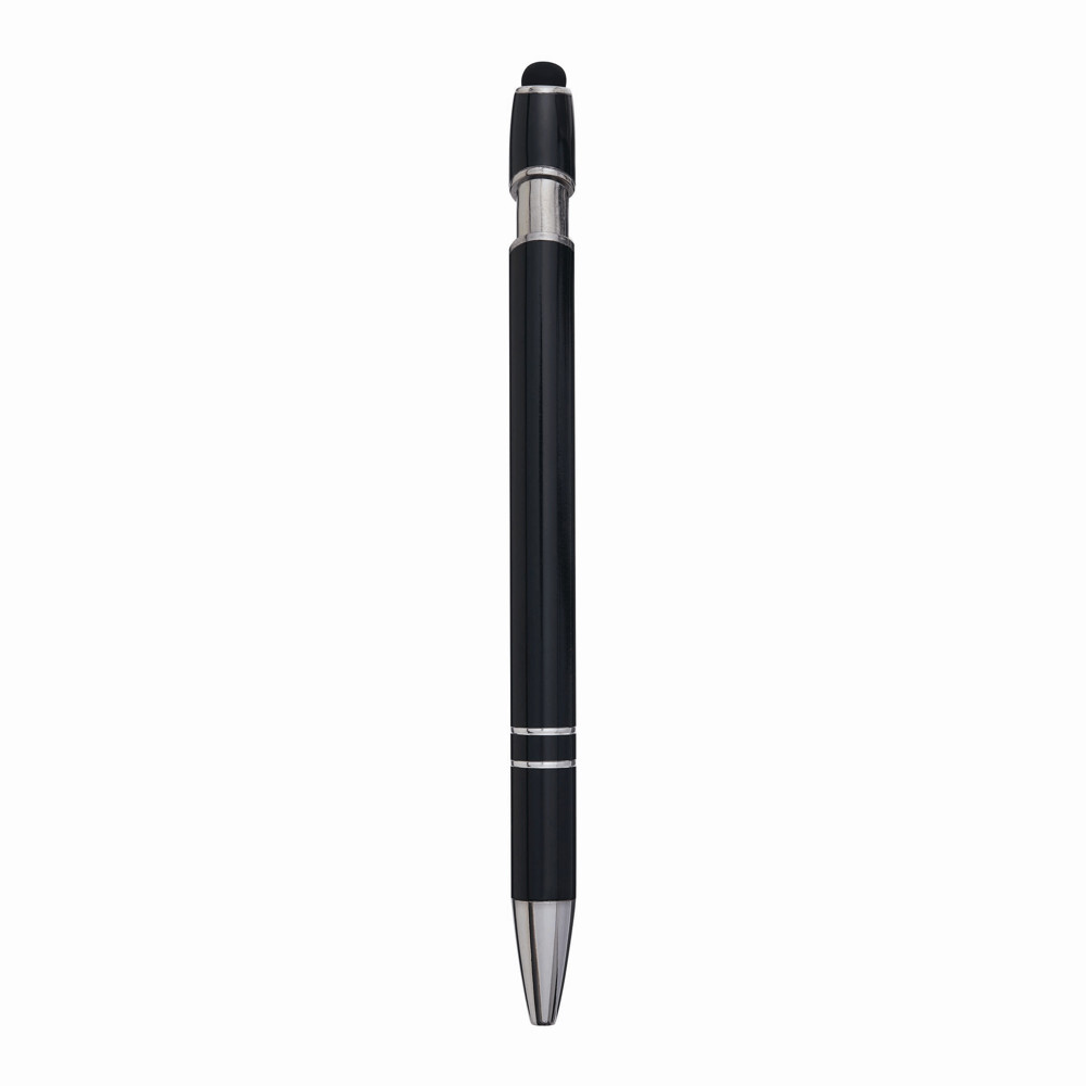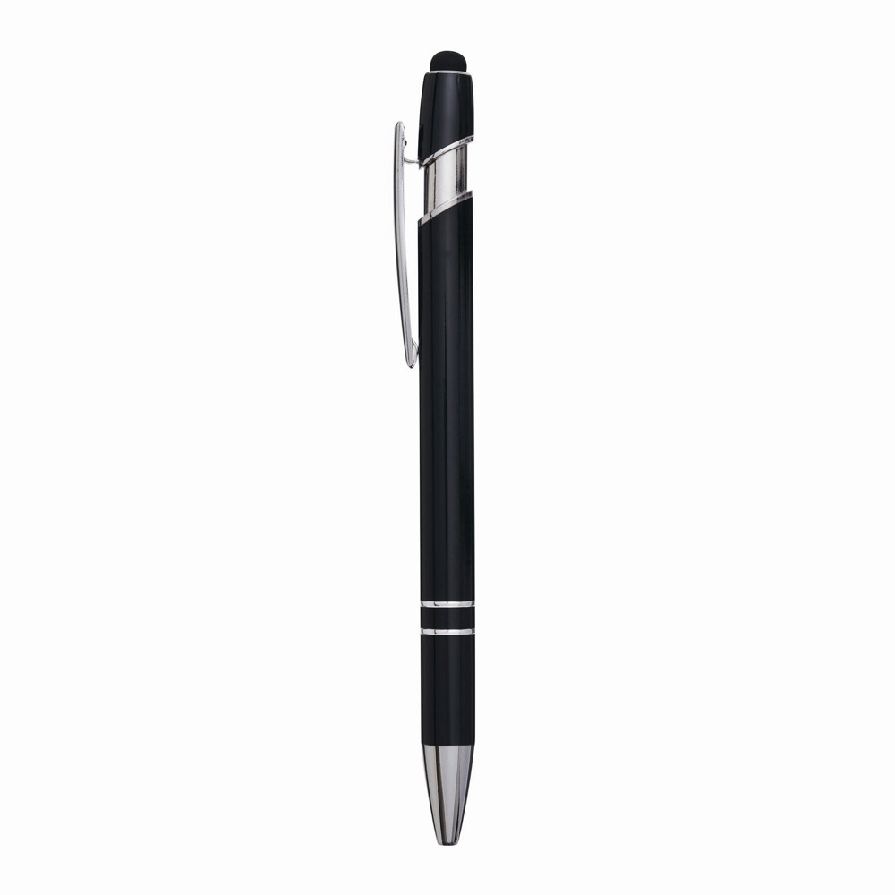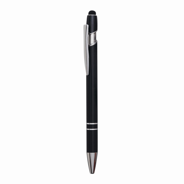 Aluminium-Kugelschreiber MERCHANT: mit glänzendem Aluminium-Schaft, Druckmechanismus, am Schaftende mit Touchscreen-Spitze, blauschreibend