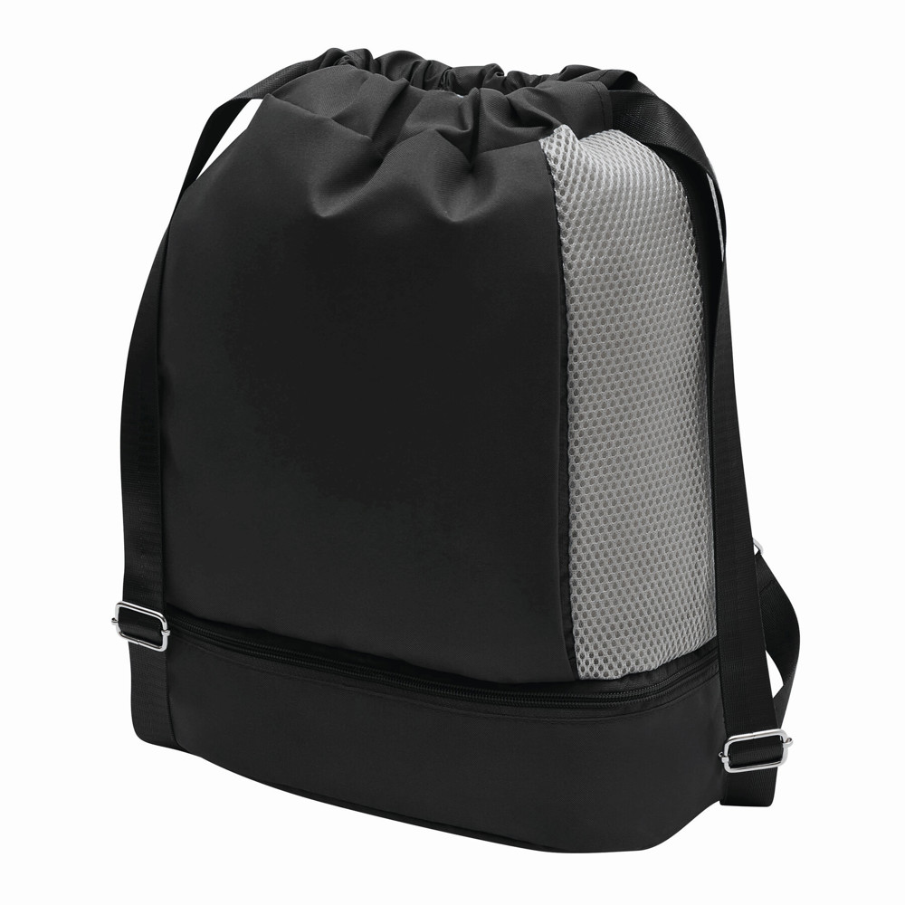 Rucksack TRIP: mit Gurtzug zum Verschließen und als Schultergurte (verstellbar), 1 großes Hauptfach mit 1 Reißverschluss-Innenfach und 2 Einsteckfächer, 2 vertikale Reißverschluss-Vortaschen, 1 Reißverschlussfach am Boden