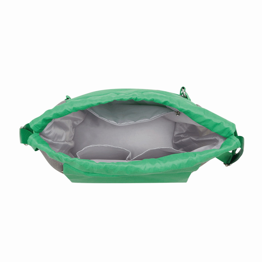 Rucksack TRIP: mit Gurtzug zum Verschließen und als Schultergurte (verstellbar), 1 großes Hauptfach mit 1 Reißverschluss-Innenfach und 2 Einsteckfächer, 2 vertikale Reißverschluss-Vortaschen, 1 Reißverschlussfach am Boden
