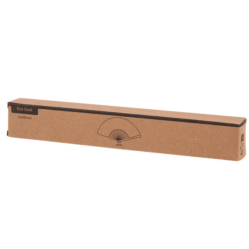 Faltbarer Fächer ECO COOL: stabiler Holzgriff und widerstandsfähige Holzstäbe mit Bespannung aus recyceltem Polyester, in Box